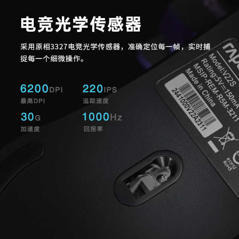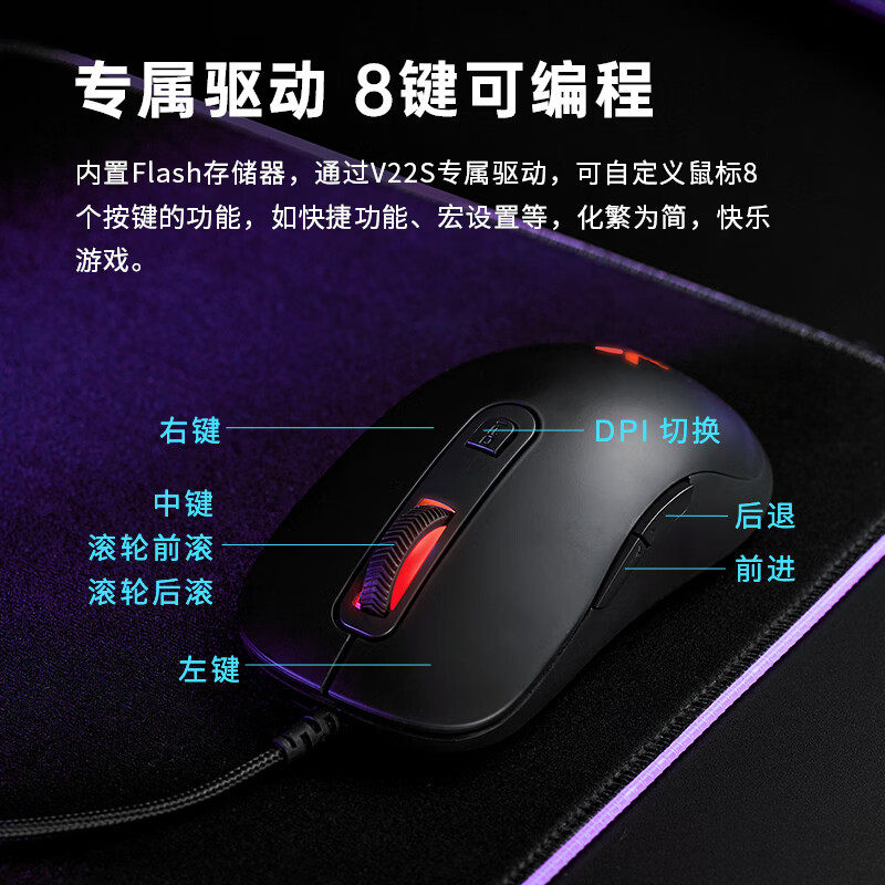 雷柏V22S有线游戏鼠标电竞cf宏机械可编程笔记本电脑家用办公专用