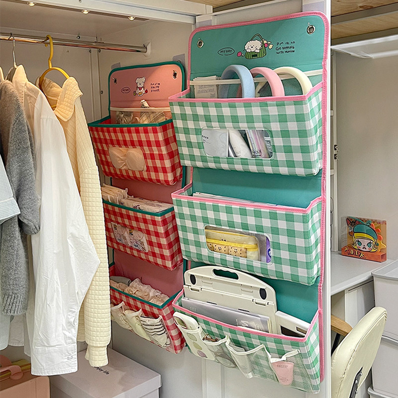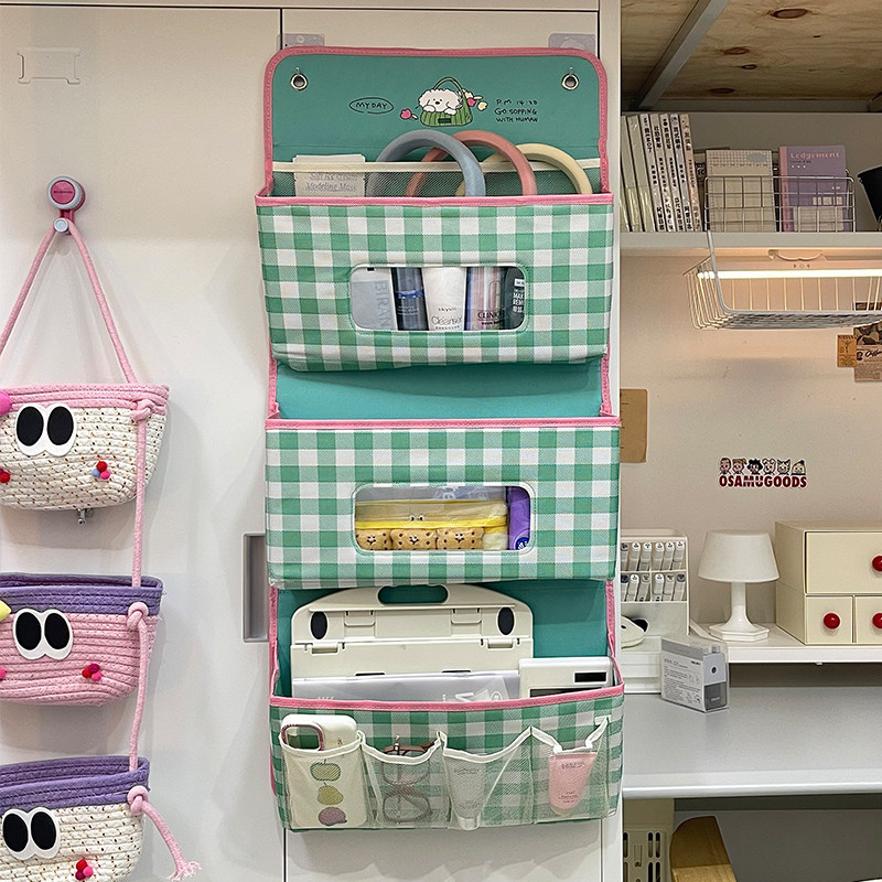 格子壁挂收纳袋便携式家用门后学生宿舍杂物储物包多功能置物挂袋