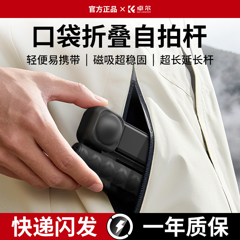 卓尔适用影石insta360 x5/x4air自拍杆口袋折叠隐形自拍杆磁吸快拆新款全景运动相机骑行配件防抖镜头保护罩