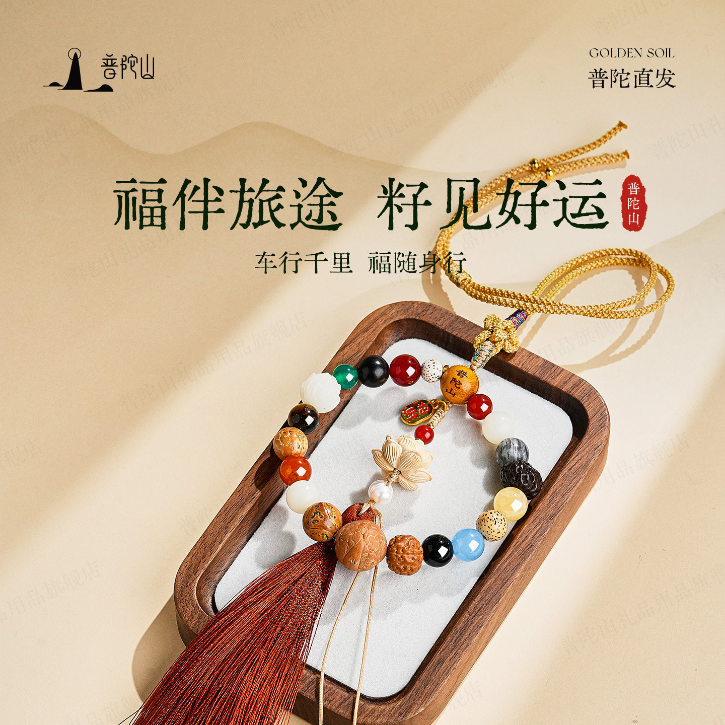 普陀山十八籽十八福车挂平安出行汽车挂件吊饰车载后视镜挂饰礼物