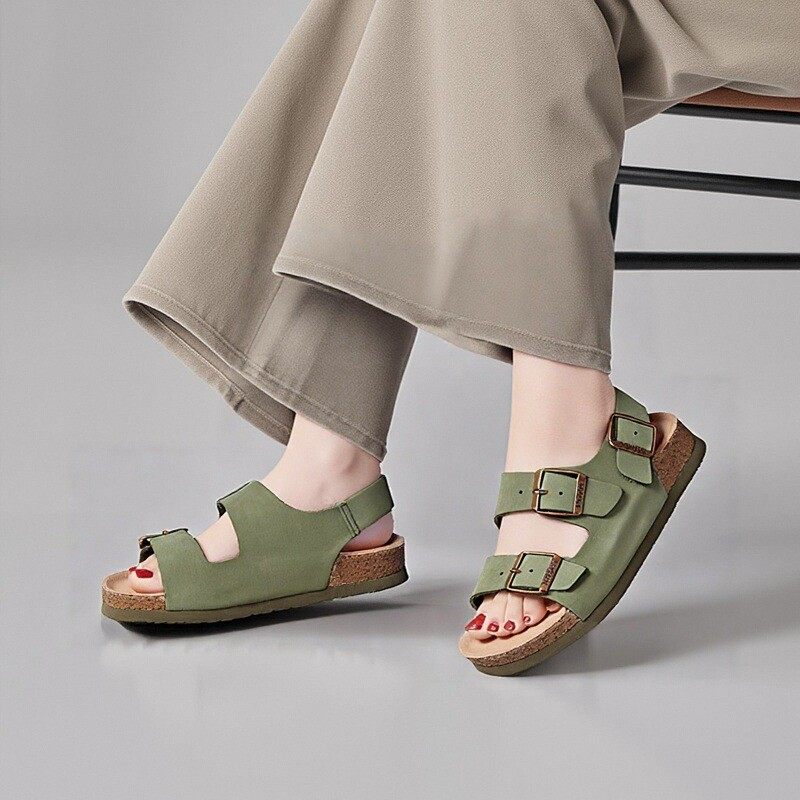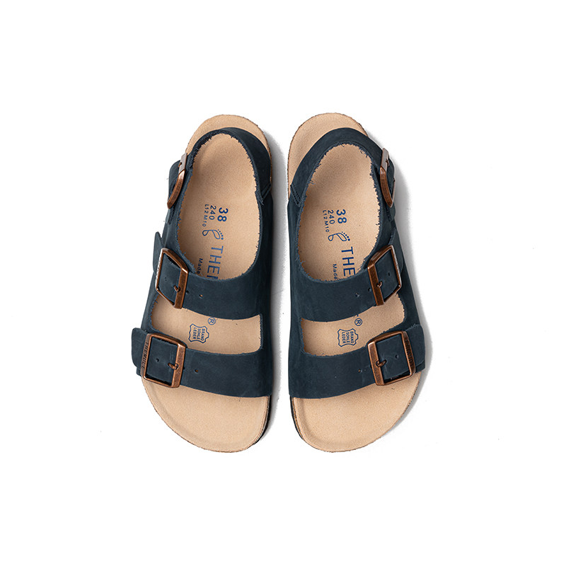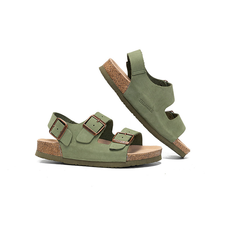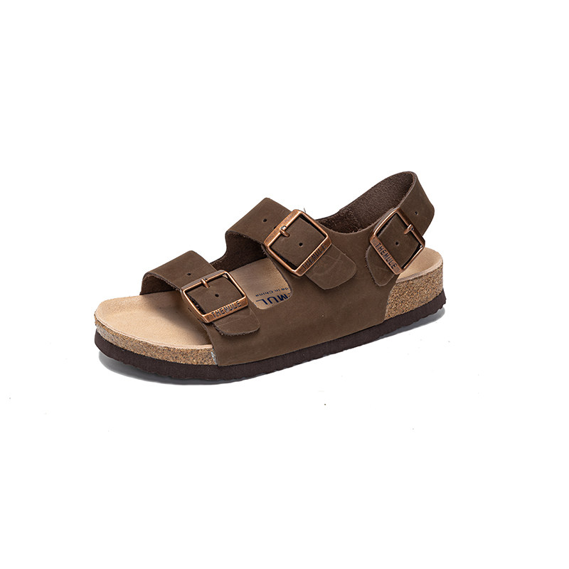 THEMULE德国勃肯凉鞋软木双扣勃肯鞋一字拖真皮平底露趾沙滩鞋