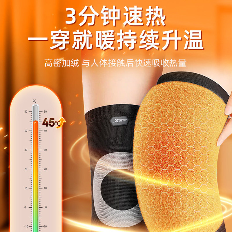特步保暖护膝防寒老寒腿男女士加绒中老年人关节运动冬季膝盖护具