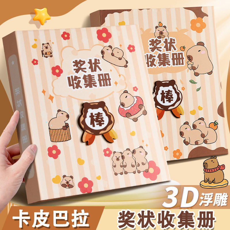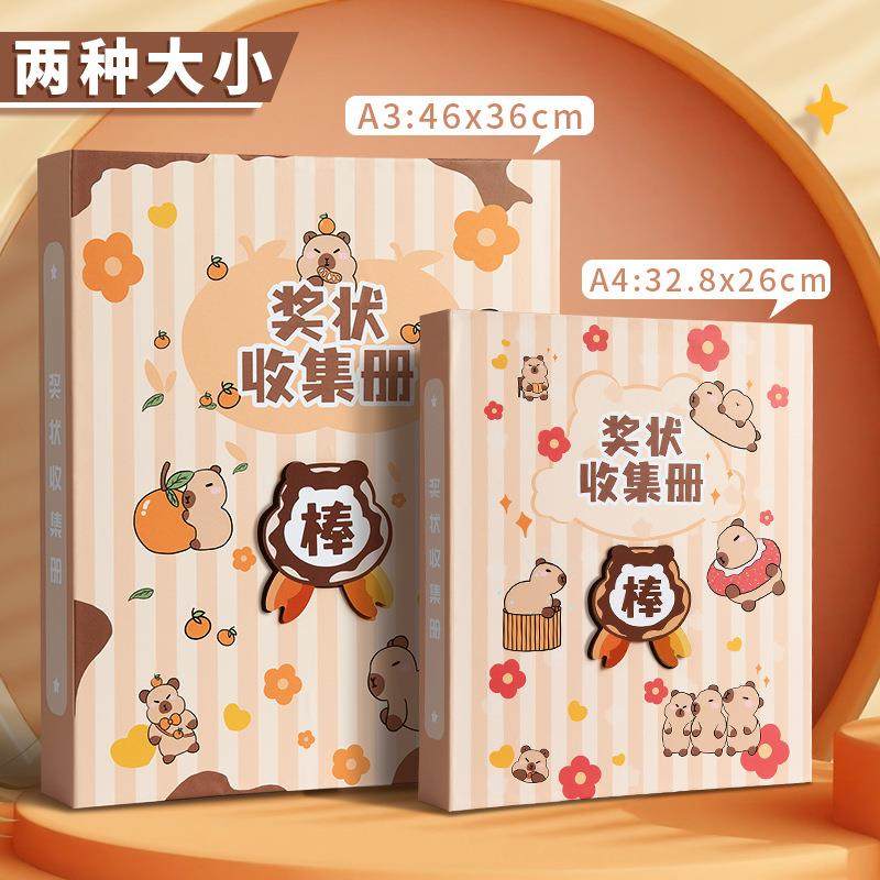 卡皮巴拉a3奖状收集册女孩男孩荣誉证书收纳册文件夹画册学生收藏