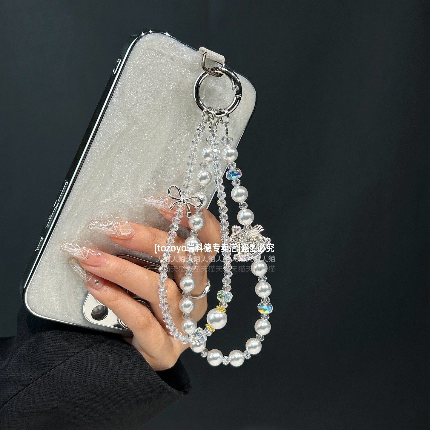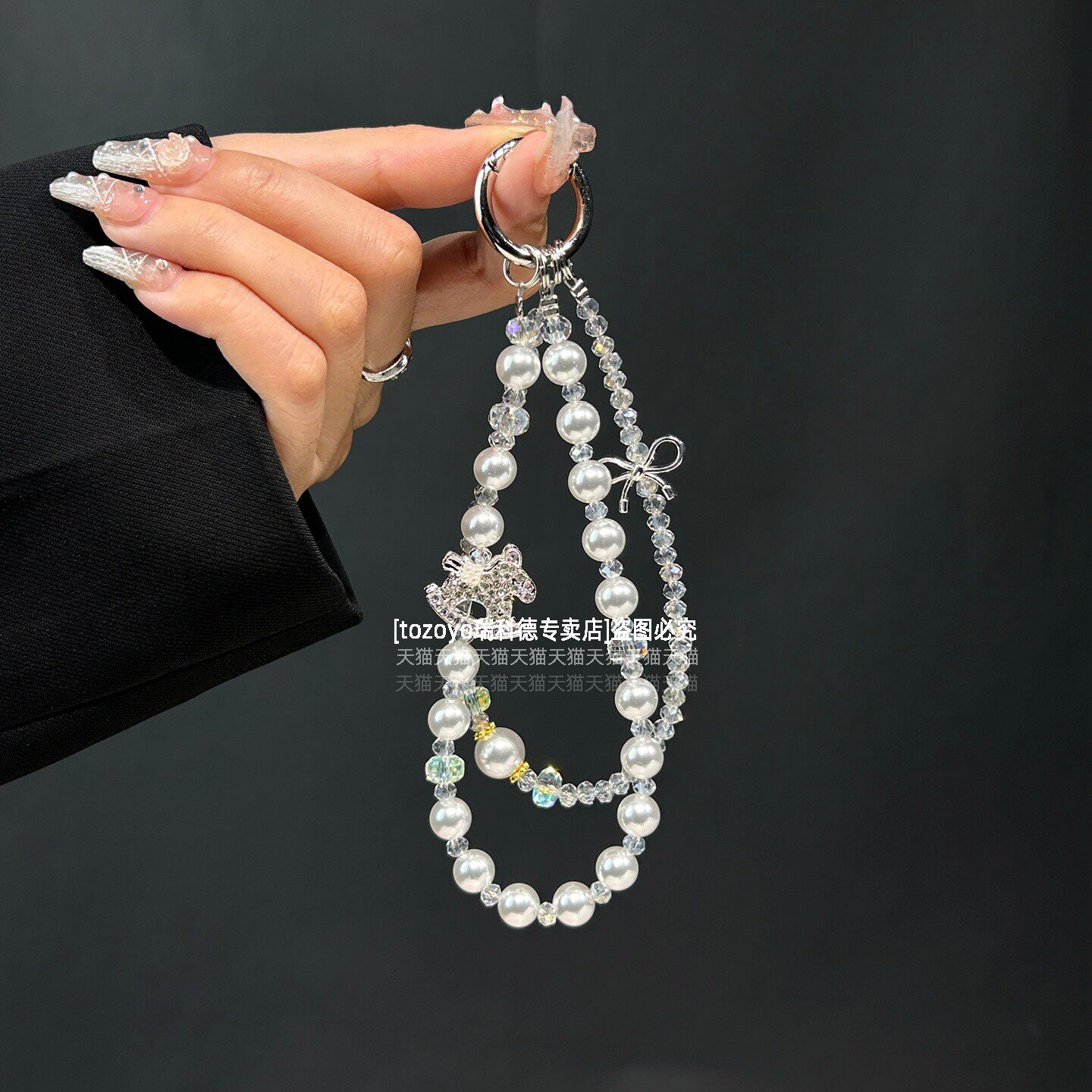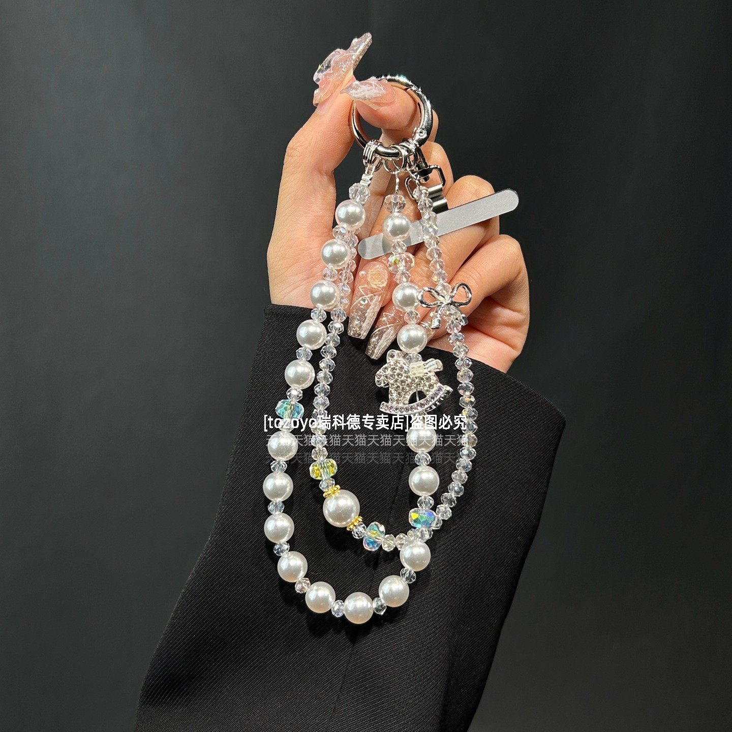 新款木马手机链巨好看珍珠水晶手腕链条精致漂亮网红串珠挂链创意可拆双层短手链马年防丢挂饰包包钥匙垫片壳