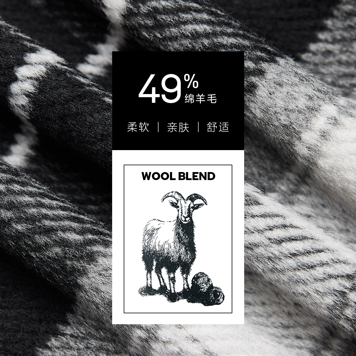 森马毛呢外套男冬季短款呢大衣不规则衬衫式翻领上衣复古时尚百搭