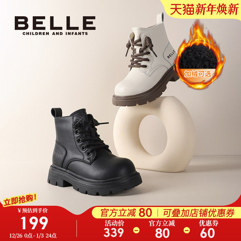 百丽童鞋女童马丁靴秋冬新款男童加绒棉鞋短靴子儿童皮靴中大宝宝