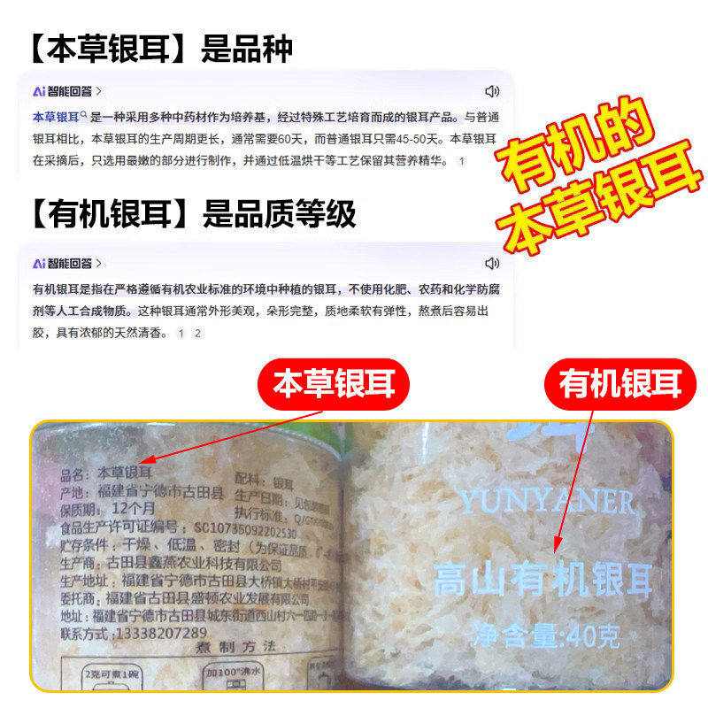 【云燕珥】有机本草银耳免洗古田干货白木耳银耳羹冲泡即食20分钟