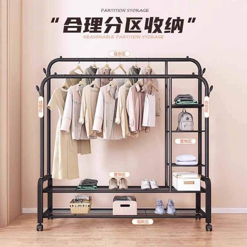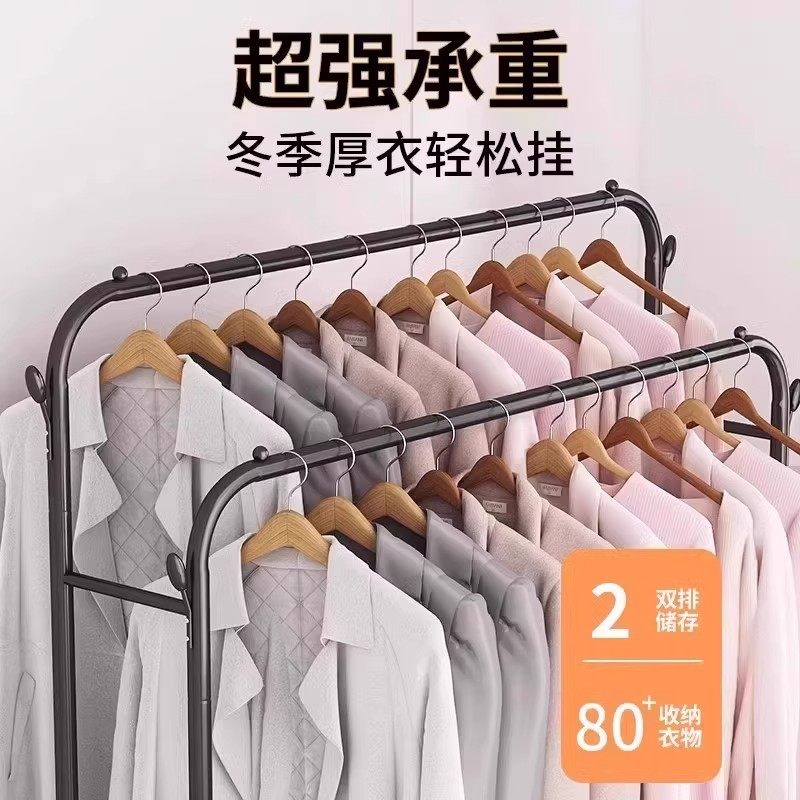 衣架落地卧室家用双杆移动晾衣架房间挂衣架子室内衣服收纳衣帽架