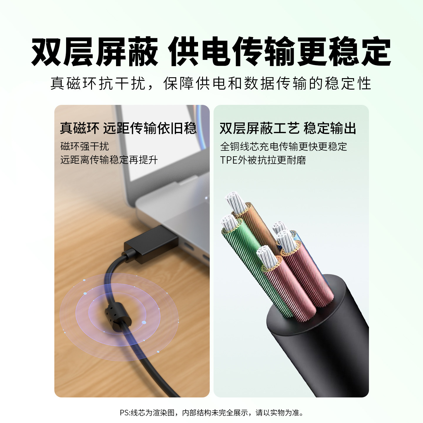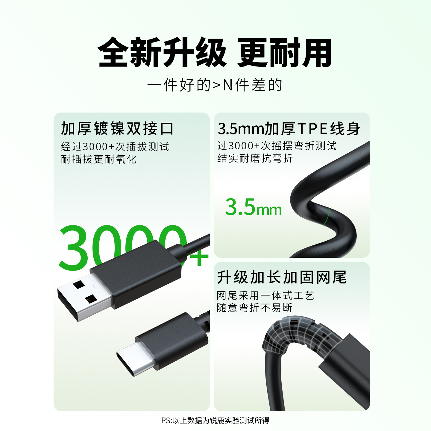 绿联加长款数据线3米2米通适用华为小米萤石安卓usb转typec摄像头监控超延长手机车载tpyec超级快充电线器6A5