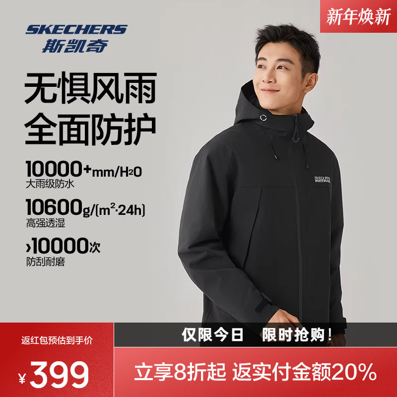斯凯奇户外冲锋衣魔方系列三合一男女同款防风防水透湿摇粒绒外套