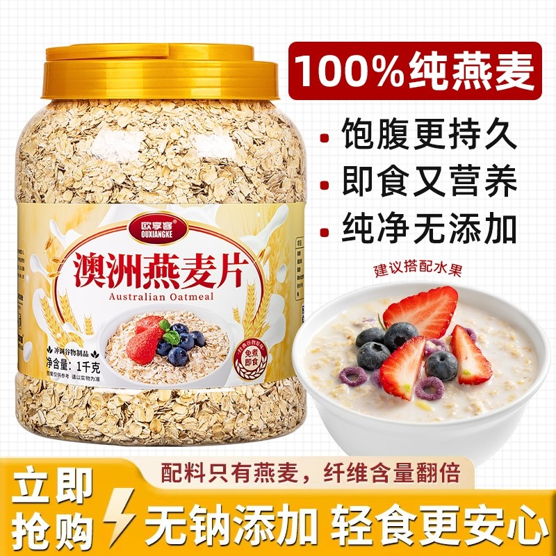 燕麦片2斤1罐4斤2罐即食麦片早餐冲饮未脱脂麦片健身代餐速食品