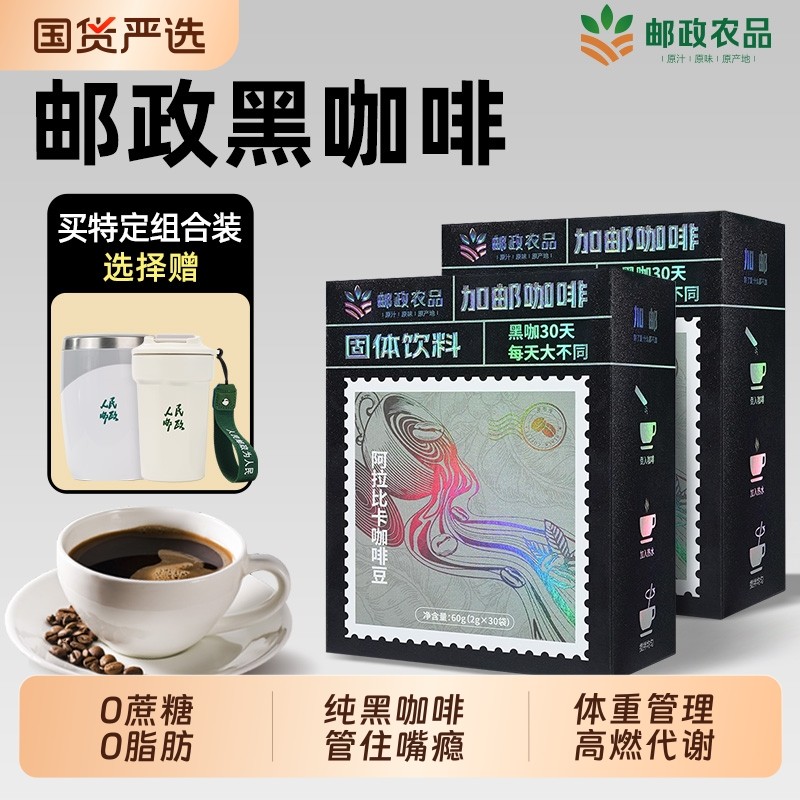 邮政美式纯黑咖啡0蔗糖0脂肪提高代谢蓝山意式浓缩黑咖速溶咖啡粉