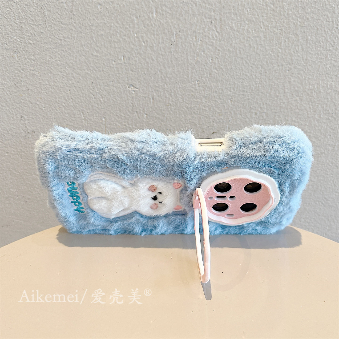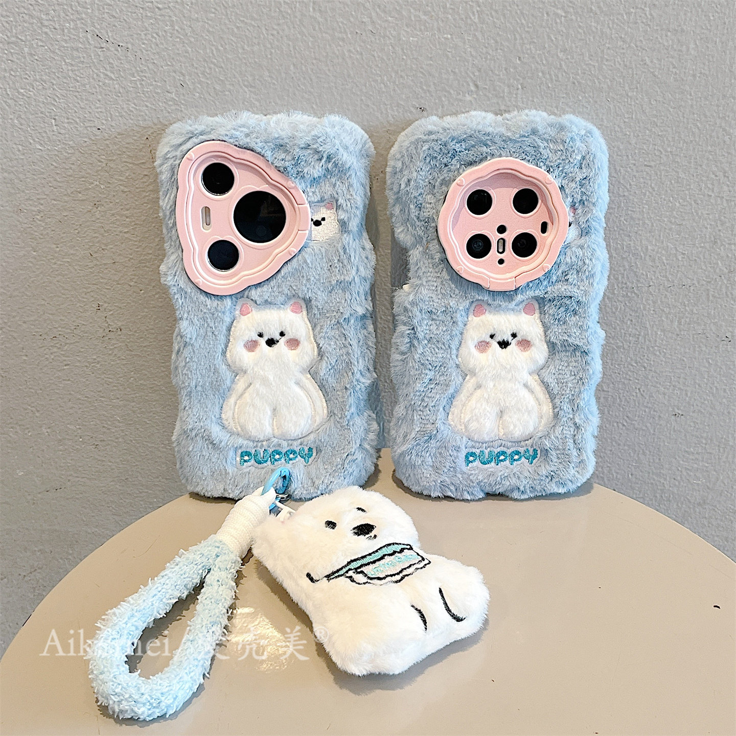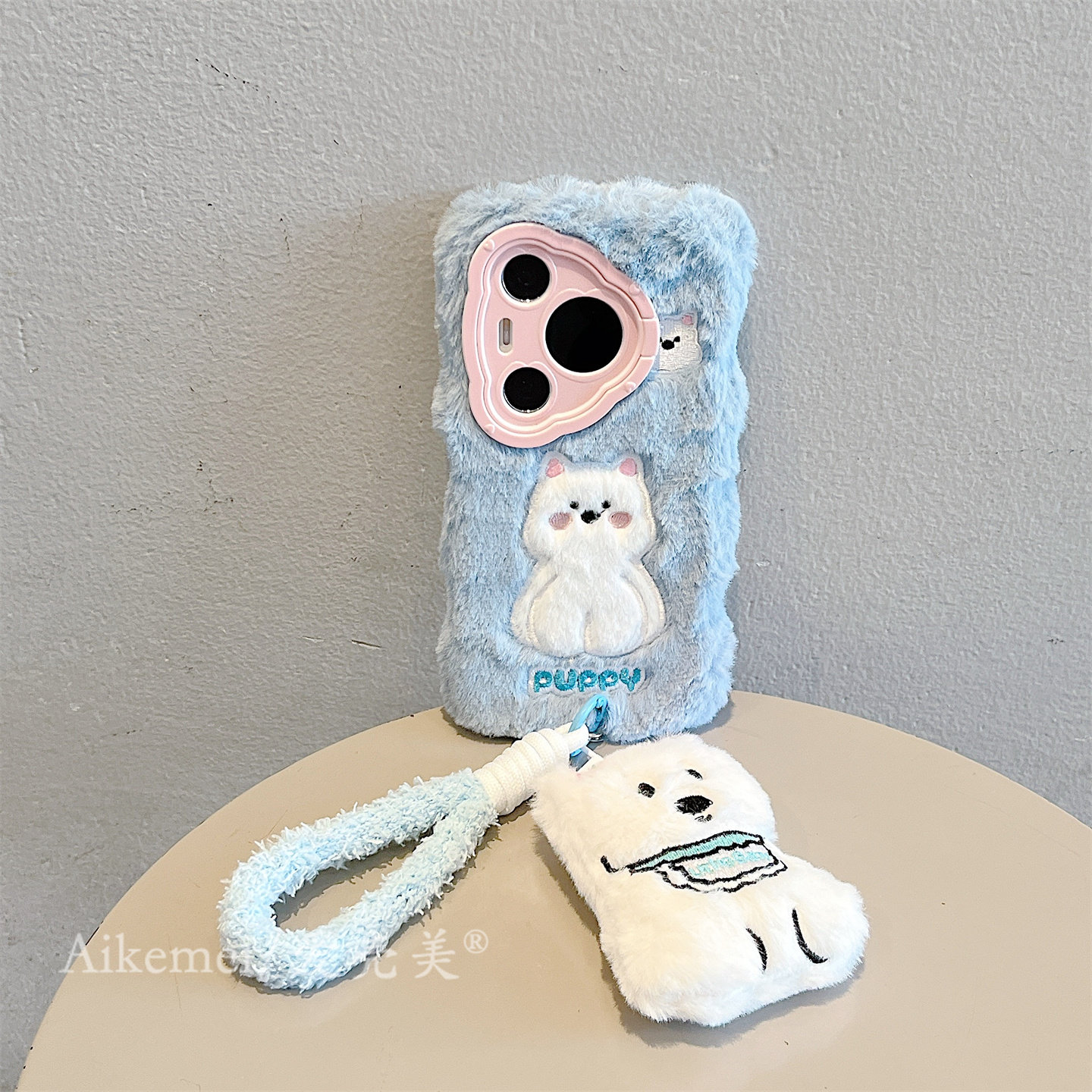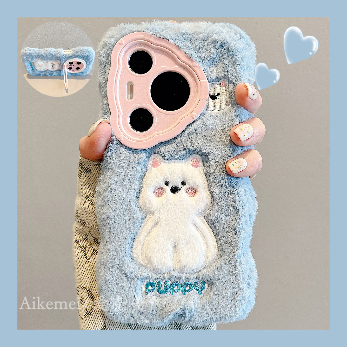 适用华为pura80pro+手机壳毛绒刺绣可爱卡通小狗Pura70pro毛绒小狗公仔挂绳p8070镜头支架mate70pro+防摔女款