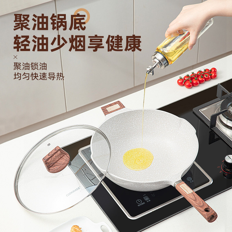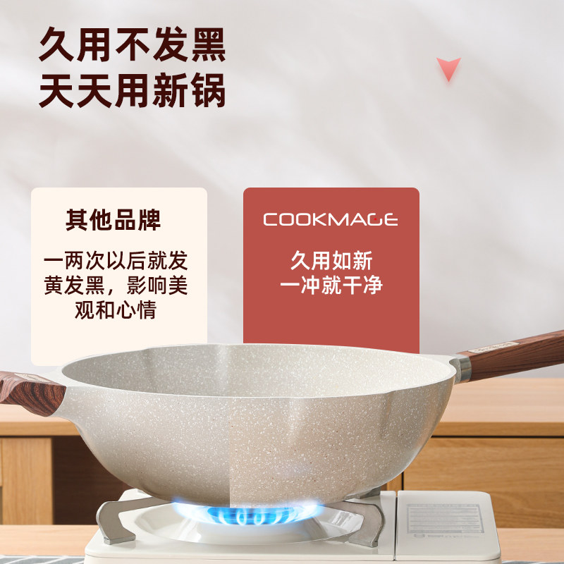 cookmage麦饭石不粘锅炒锅无油烟炒菜锅不沾平底煎锅炉灶通用高档
