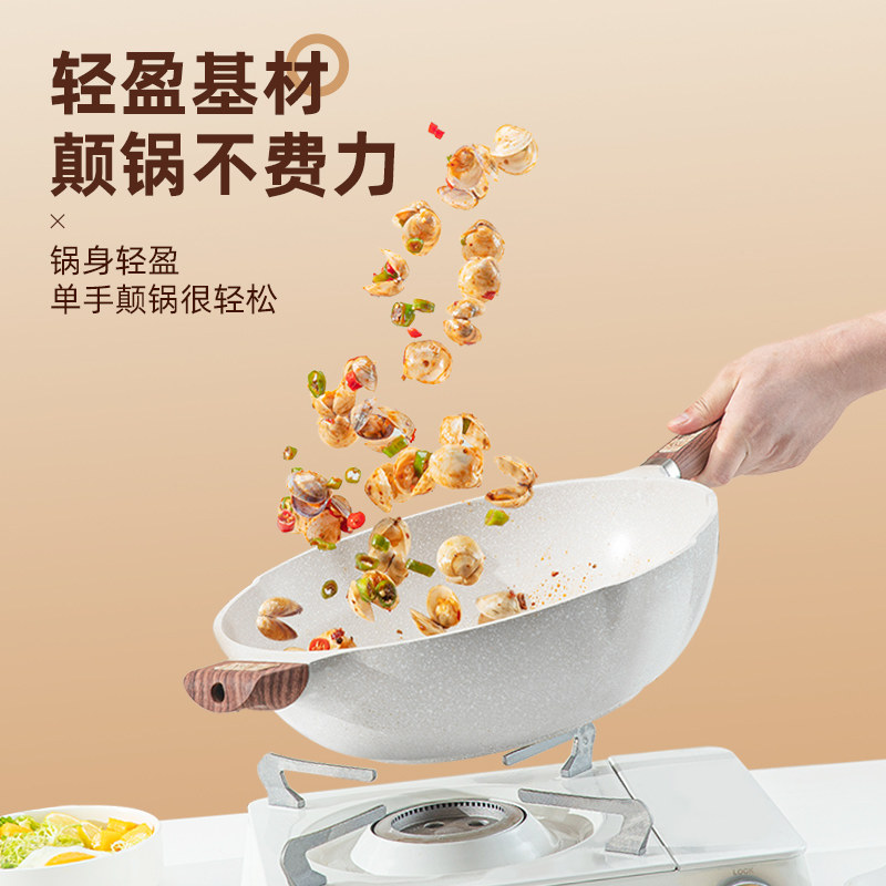 卡罗特不粘锅炒锅家用麦饭石炒菜锅平底不沾钛锅电磁炉燃气灶专用