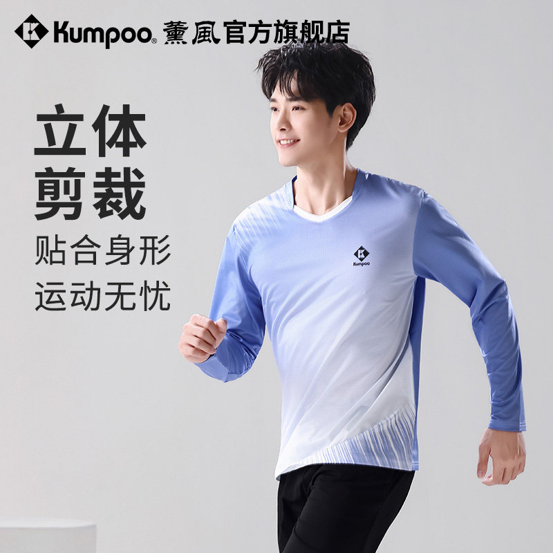 薰风2025新款羽毛球服男运动长袖圆领T恤跑步健身服熏风休闲上衣