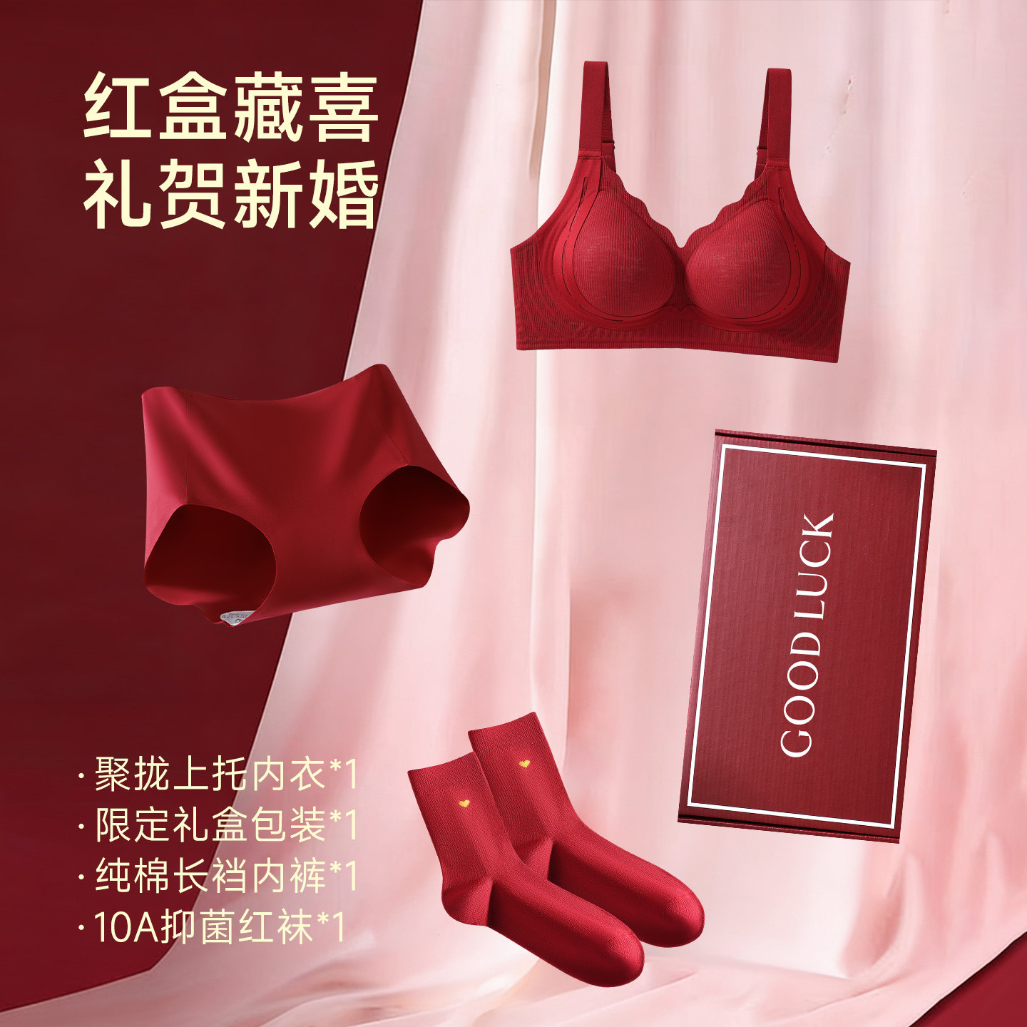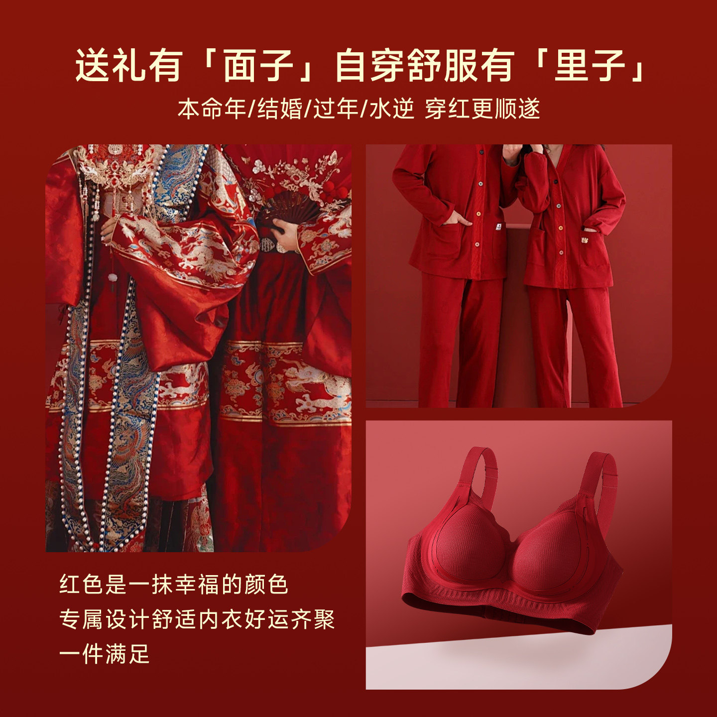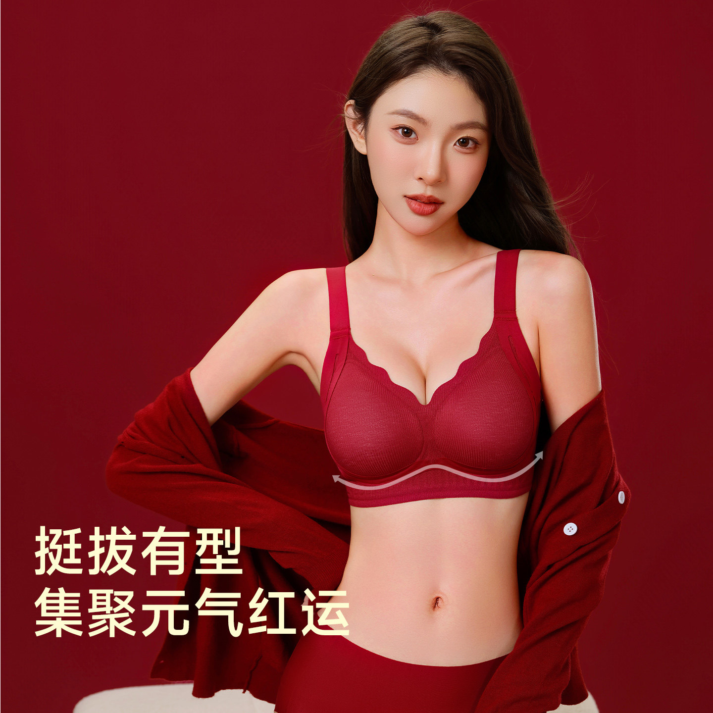 红色本命年内衣女小胸聚拢新娘结婚无痕2026马年无痕文胸内裤套装