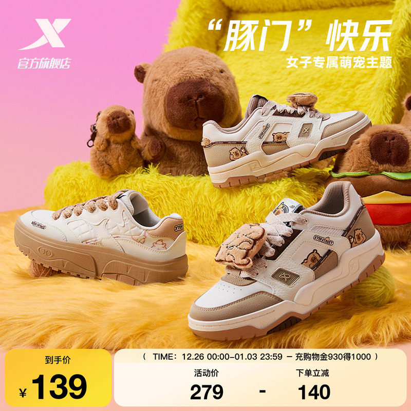 特步新晖卡皮巴拉板鞋|女鞋2025冬季新款百搭舒适百搭休闲鞋