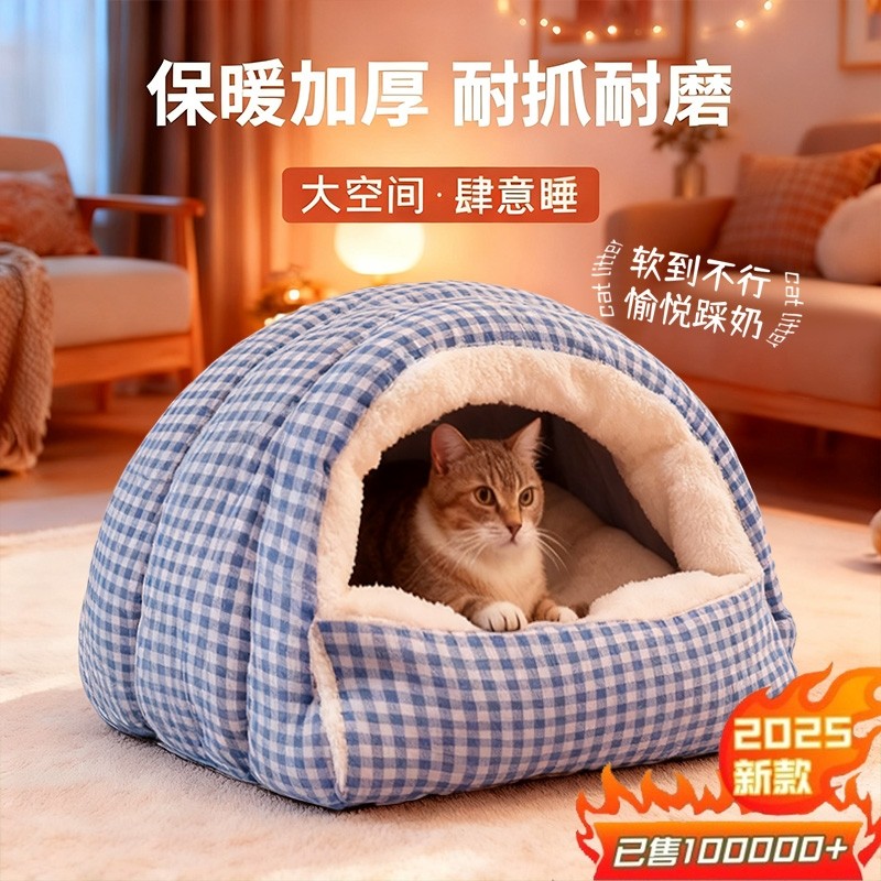 猫窝冬季可拆洗封闭式加厚保暖猫屋猫狗窝宠物用品新款防风双层
