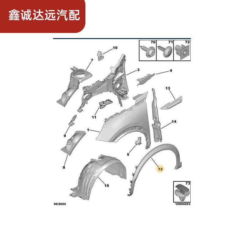 YL015801XT/800XT适用标致23款2008轮轮眉翼子板P24轮眉装饰条