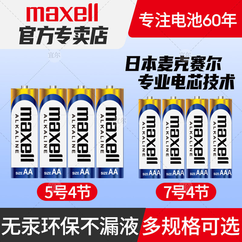 Maxell麦克赛尔5号4粒装碱性电池五号遥控器儿童玩具7号拍立得电子门锁电池鼠标空调电视闹钟七号电池1.5v