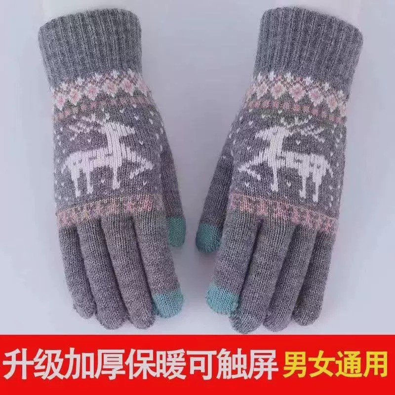 可触屏棉手套男士冬季保暖加绒加厚毛线针织骑行男女同款防寒手套