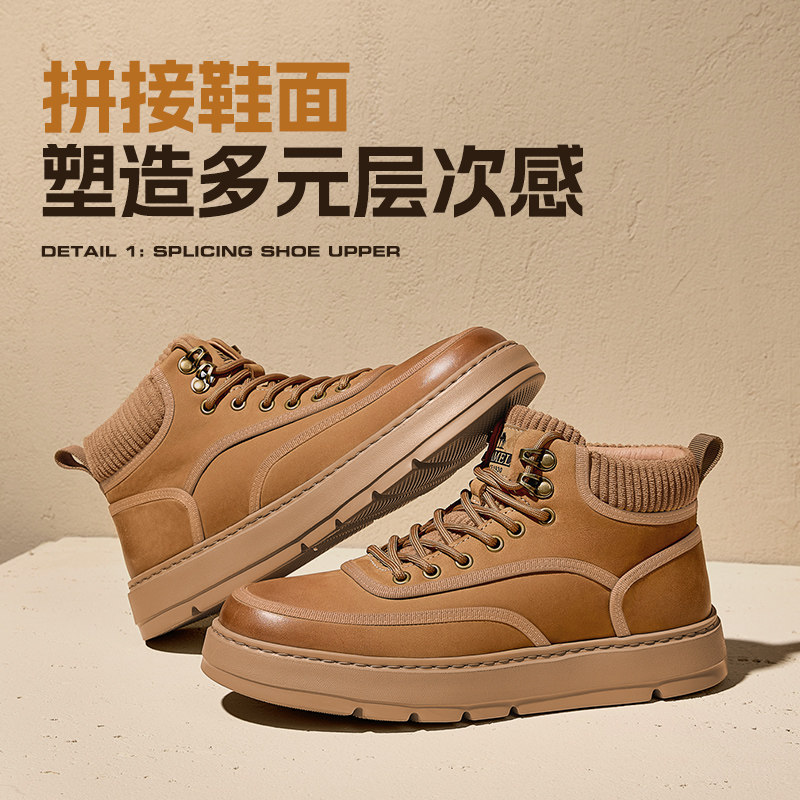 骆驼男鞋2025秋冬高帮鞋复古板鞋休闲防滑百搭户外靴保暖工装潮鞋