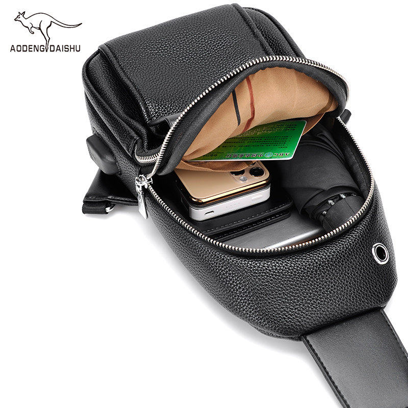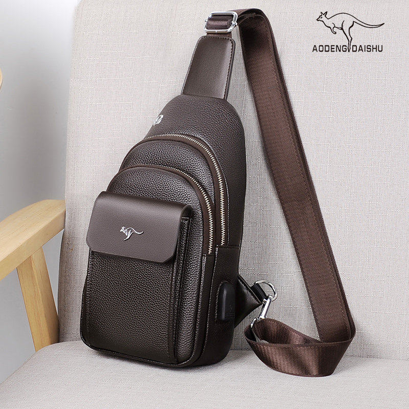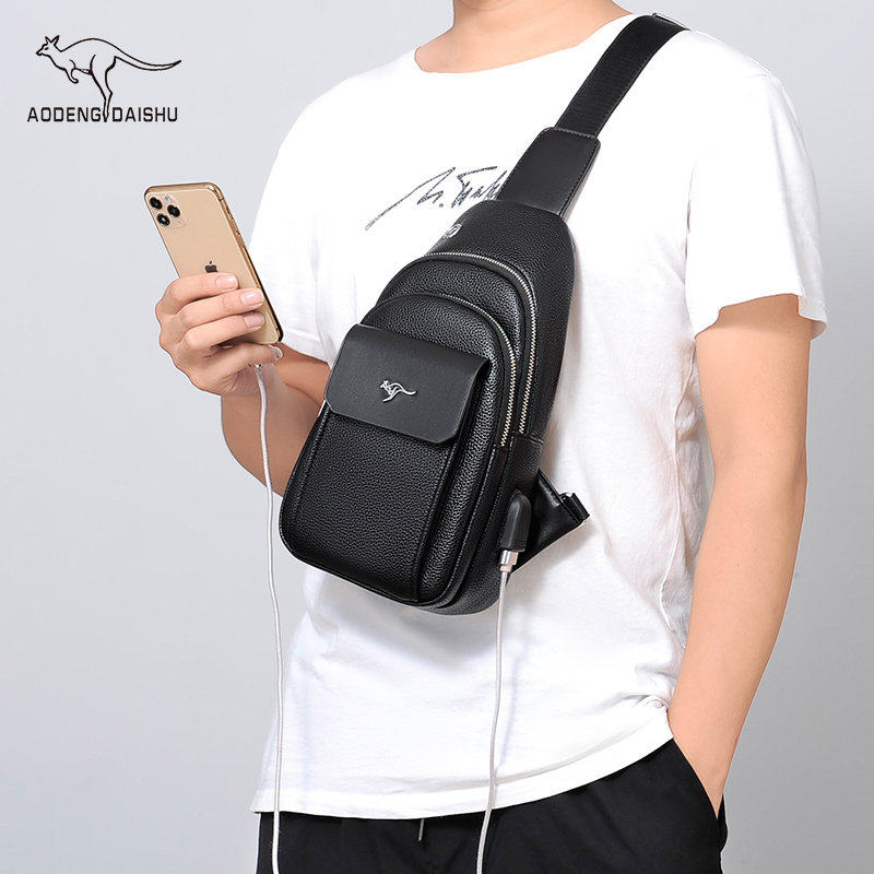 彬澳袋鼠双层男士胸包男包时尚休闲单肩包斜挎包韩版胸前小背包潮