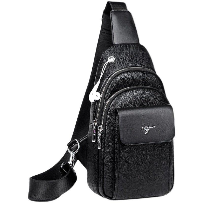 男士胸包真皮单肩斜挎包休闲背包男款二层牛皮多功能男包胸前包包