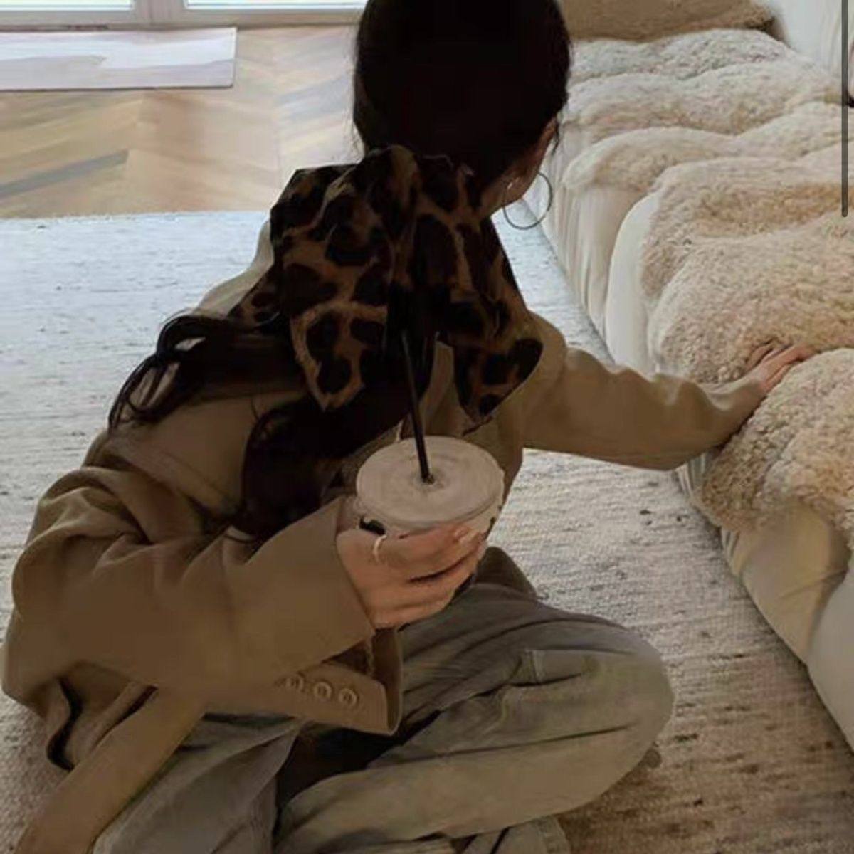 新款韩系方形秋冬高级豹纹大肠发圈女高头发马尾发饰发绳复古头绳