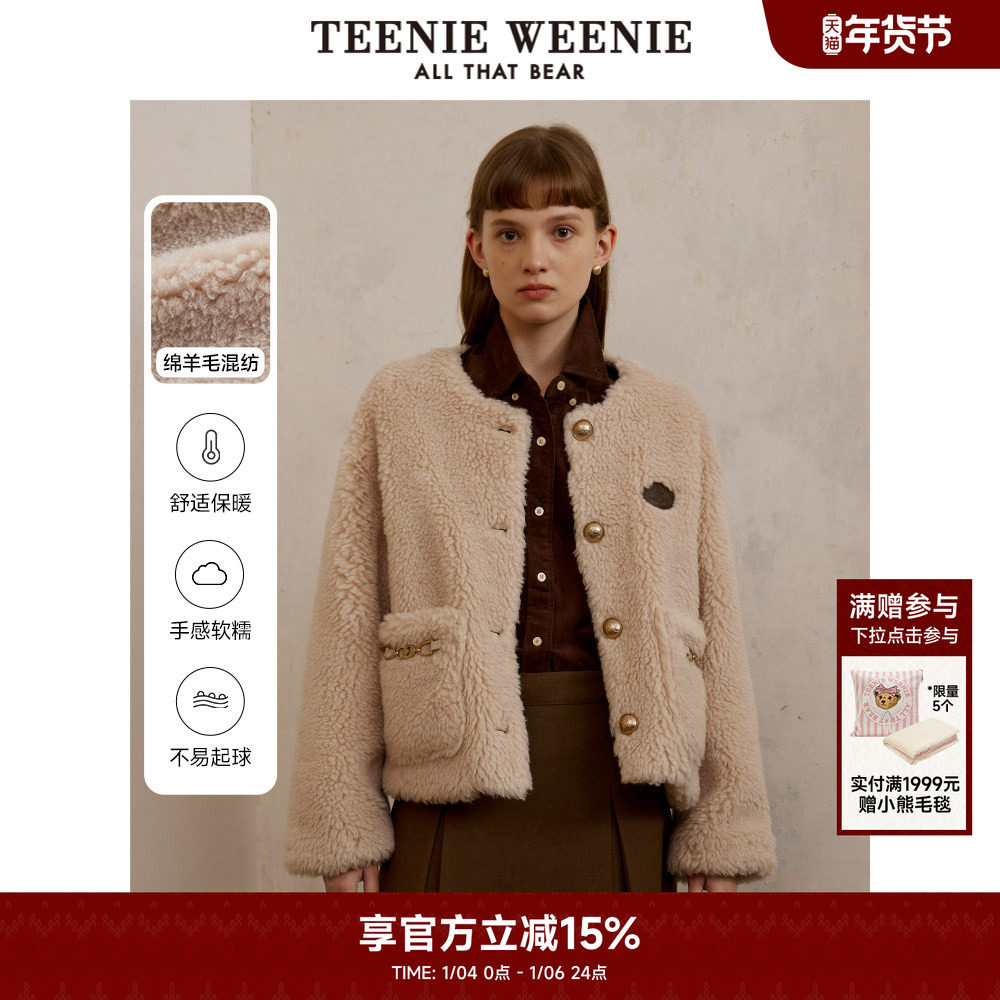 TeenieWeenie小熊奥莱女装时髦秋季小香风绵羊毛保暖圆领舒适外套