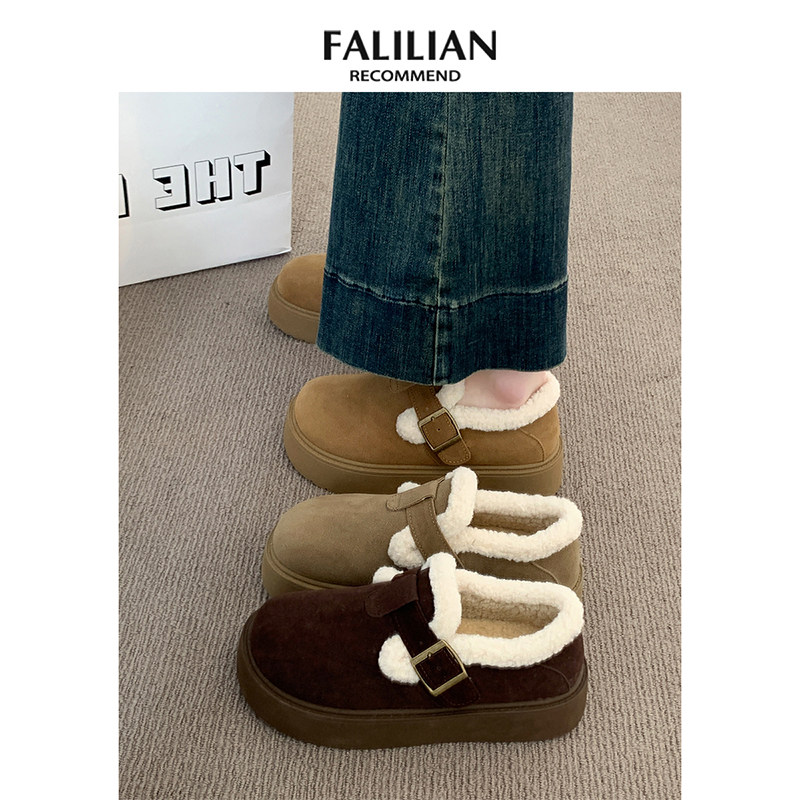 TATAFOCUS~加绒毛毛鞋韩版圆头皮带扣2025冬季新款勃肯鞋女35-28