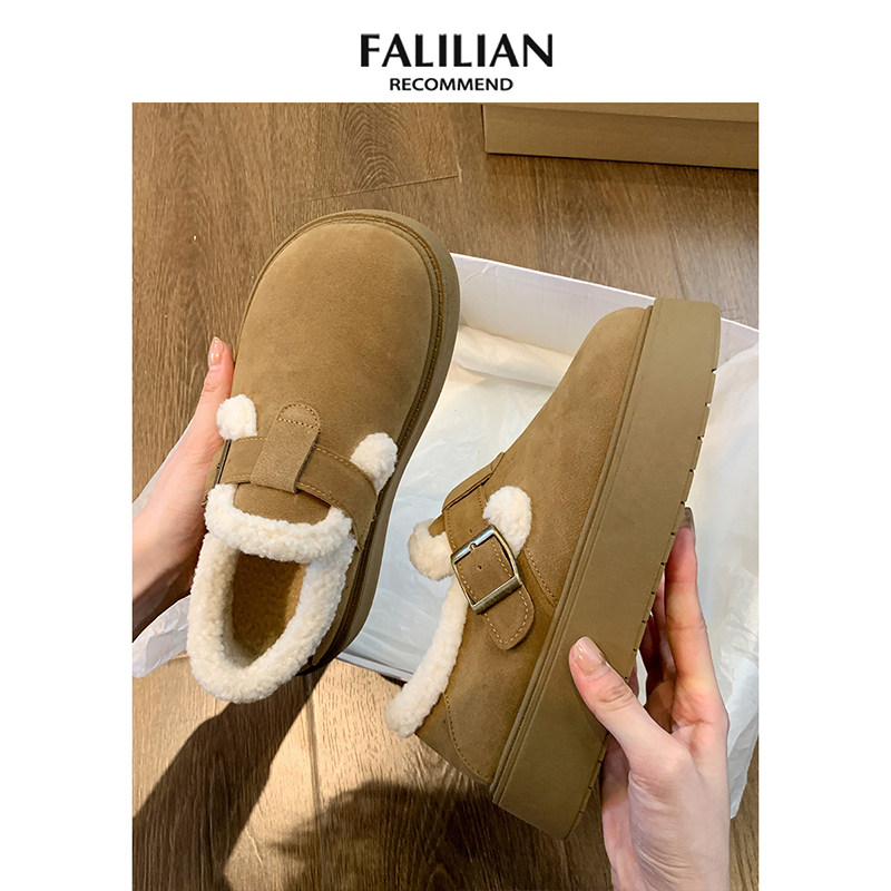 厚底加绒豆豆勃肯鞋女2025新款秋冬季乐福鞋博肯棉鞋子保暖雪地靴