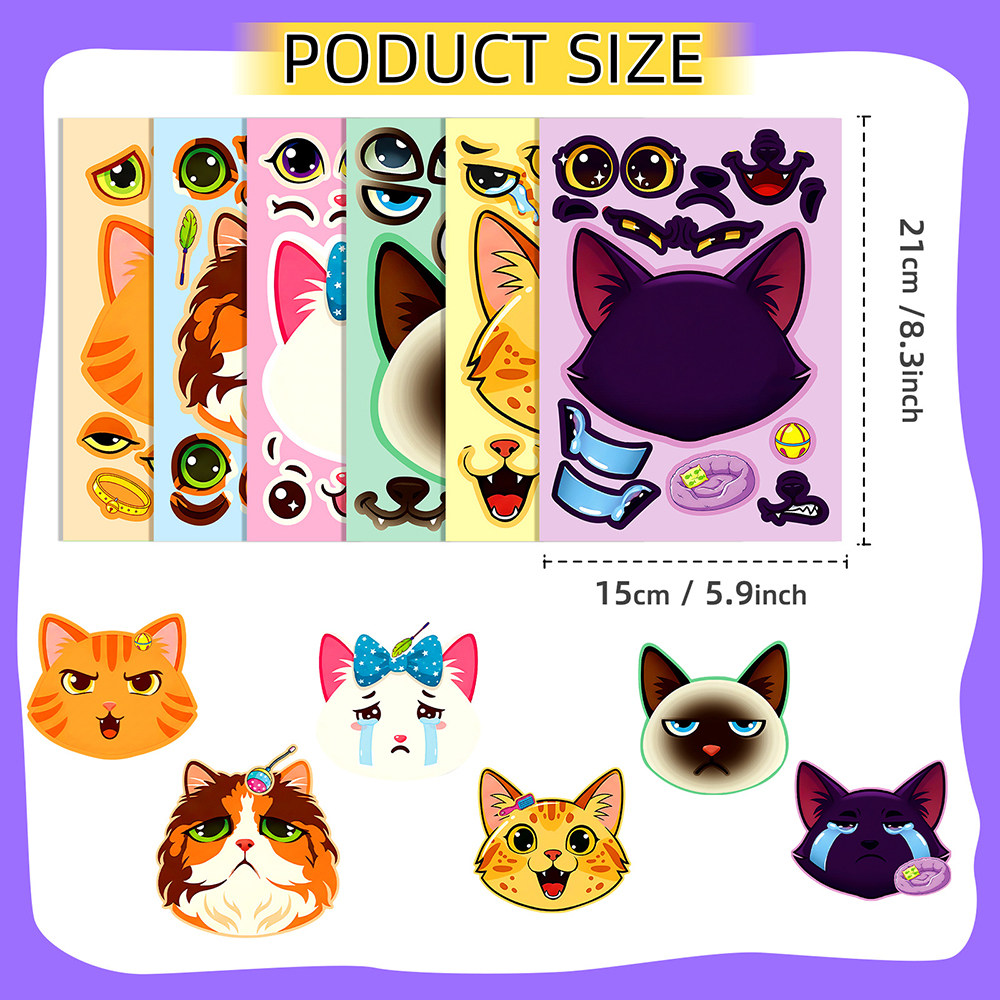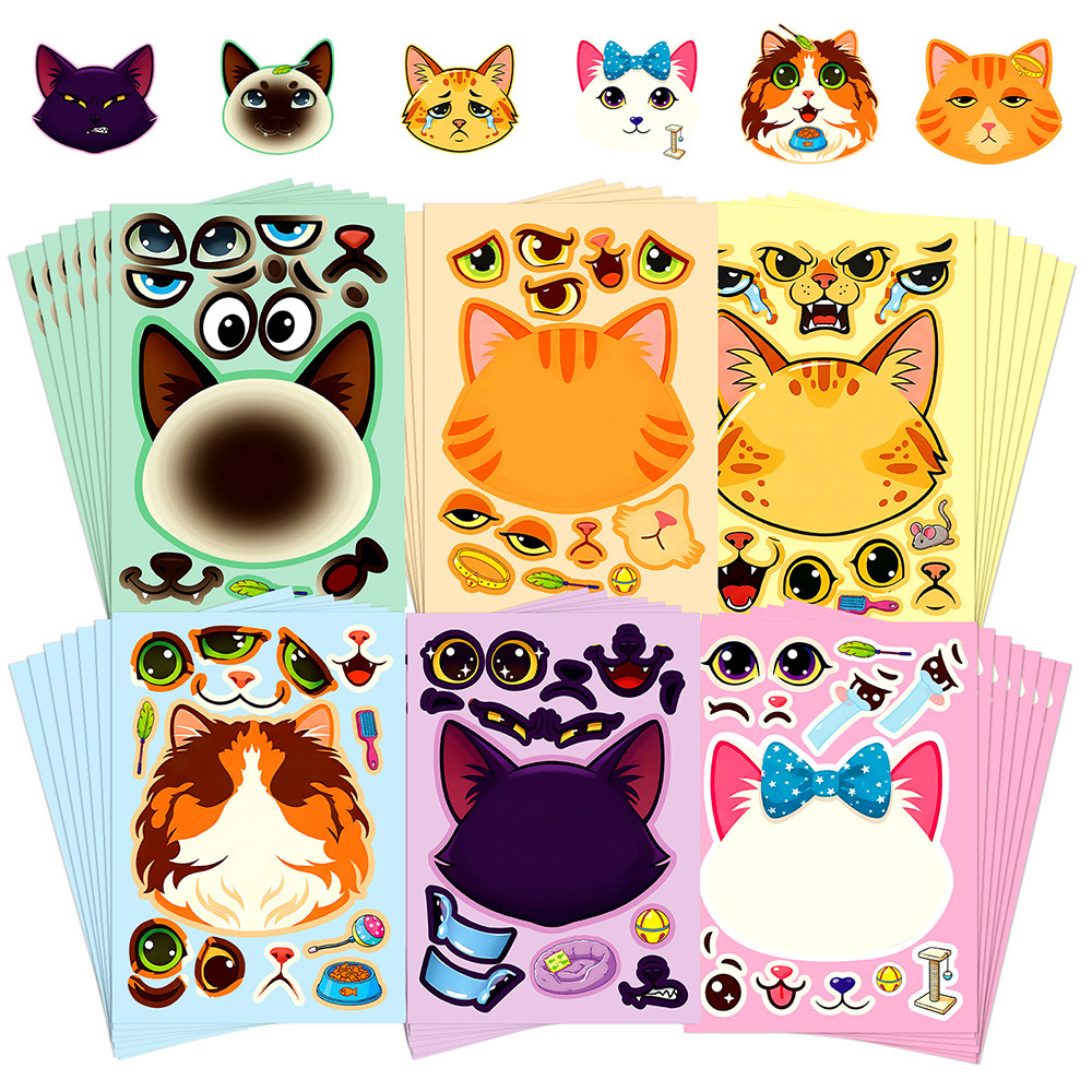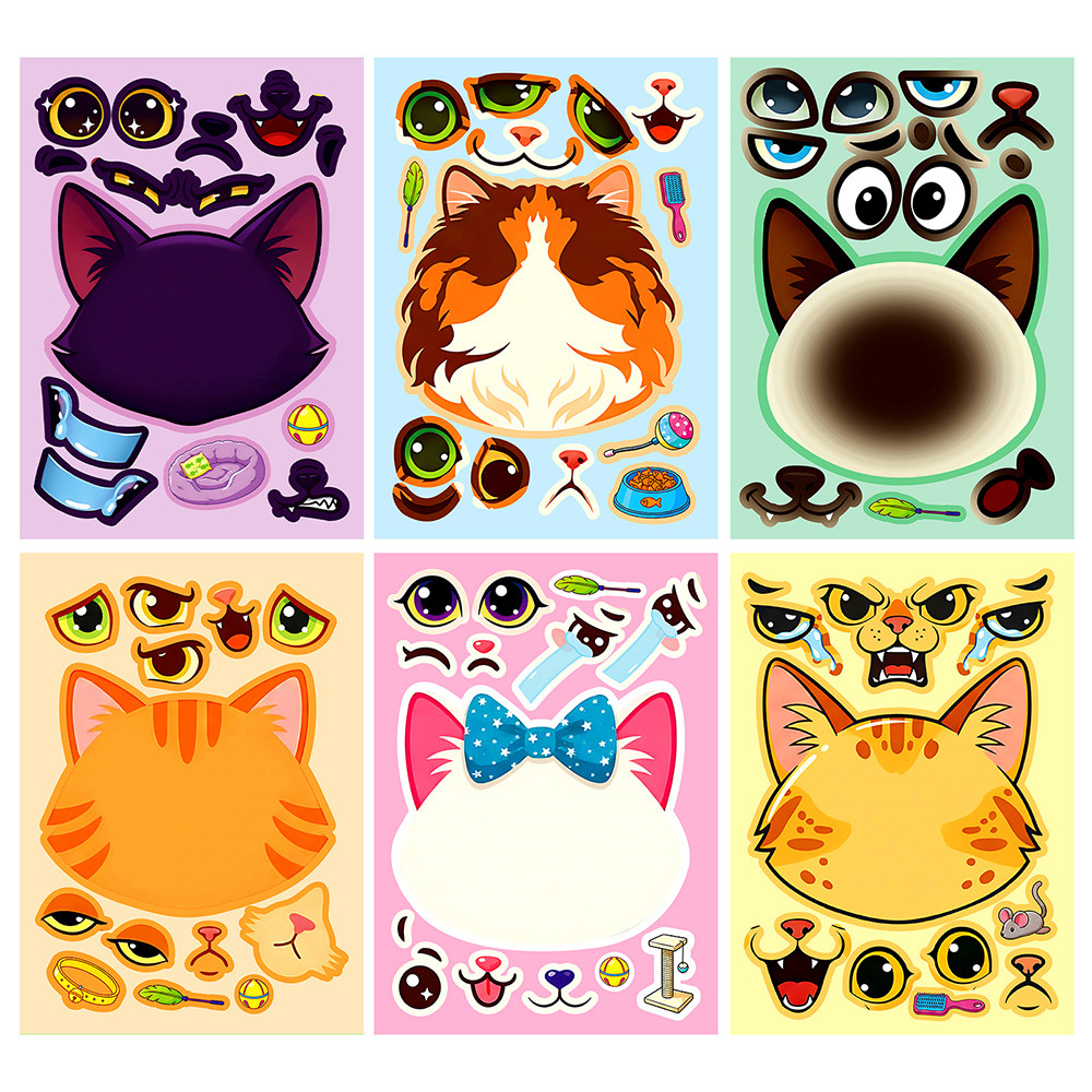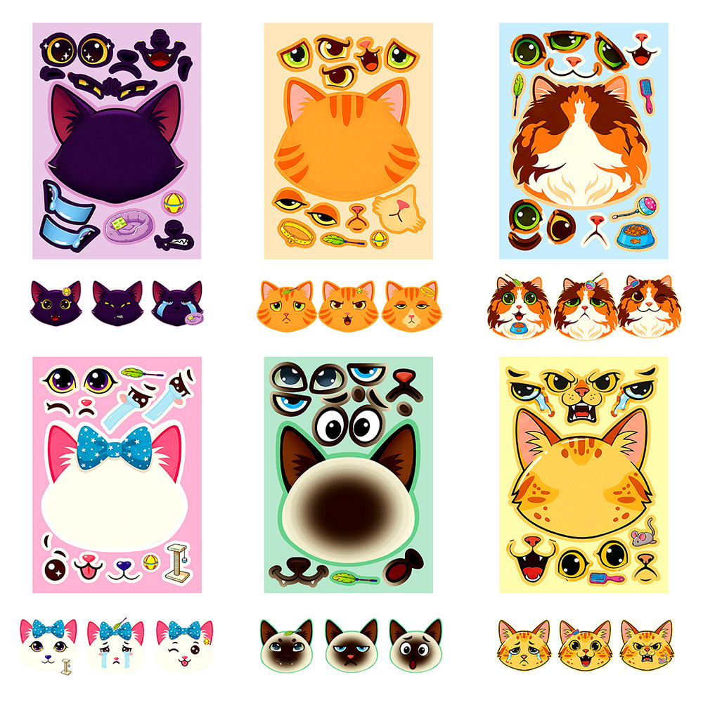 12张猫咪拼图贴纸ins风卡通可爱猫咪表情儿童手工玩具拼贴diy贴画