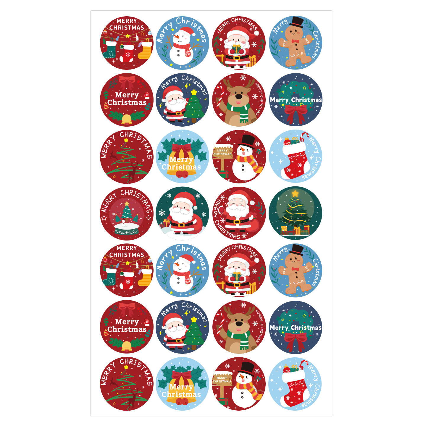 圣诞节贴纸可爱卡通圣诞老人麋鹿雪花手账小贴画平安夜礼物圣诞包装封口贴节日装饰防水创意自粘不干胶标签D1