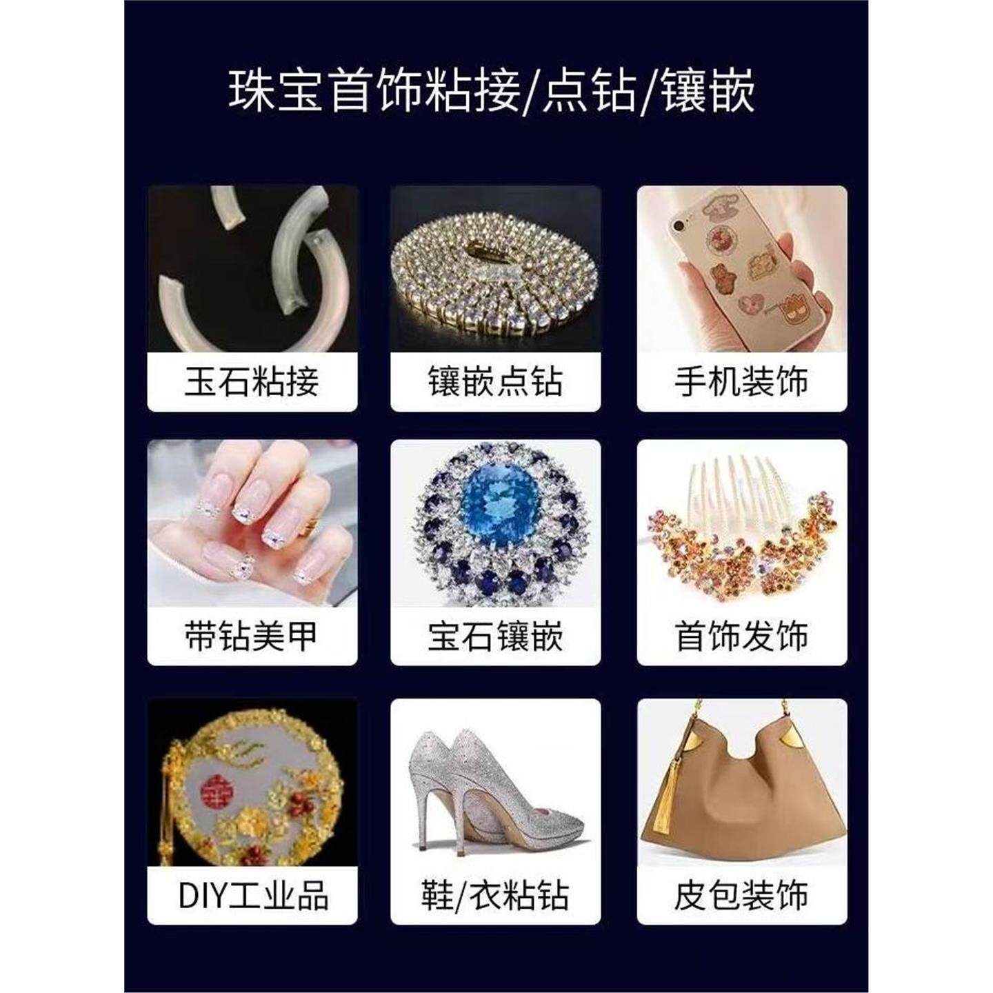 德国镶嵌珠宝专用胶水首饰胶透明无痕粘珠宝钻石珍珠项链戒指耳环蜜蜡琥珀黏玉石翡翠宝石发卡耳钉镶嵌diy胶