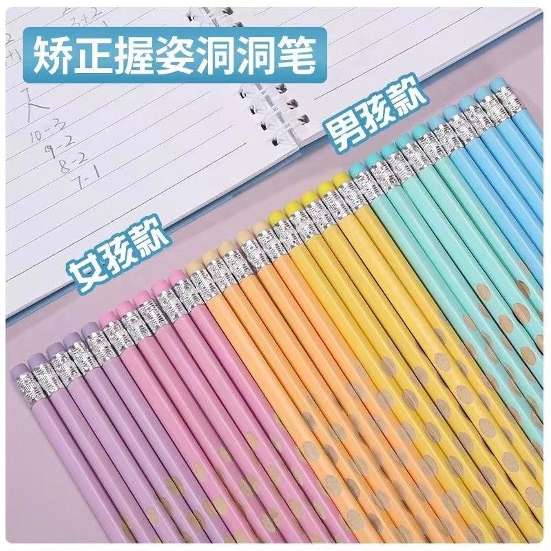 10支HB洞洞铅笔马卡龙色系三角杆铅笔矫正握姿