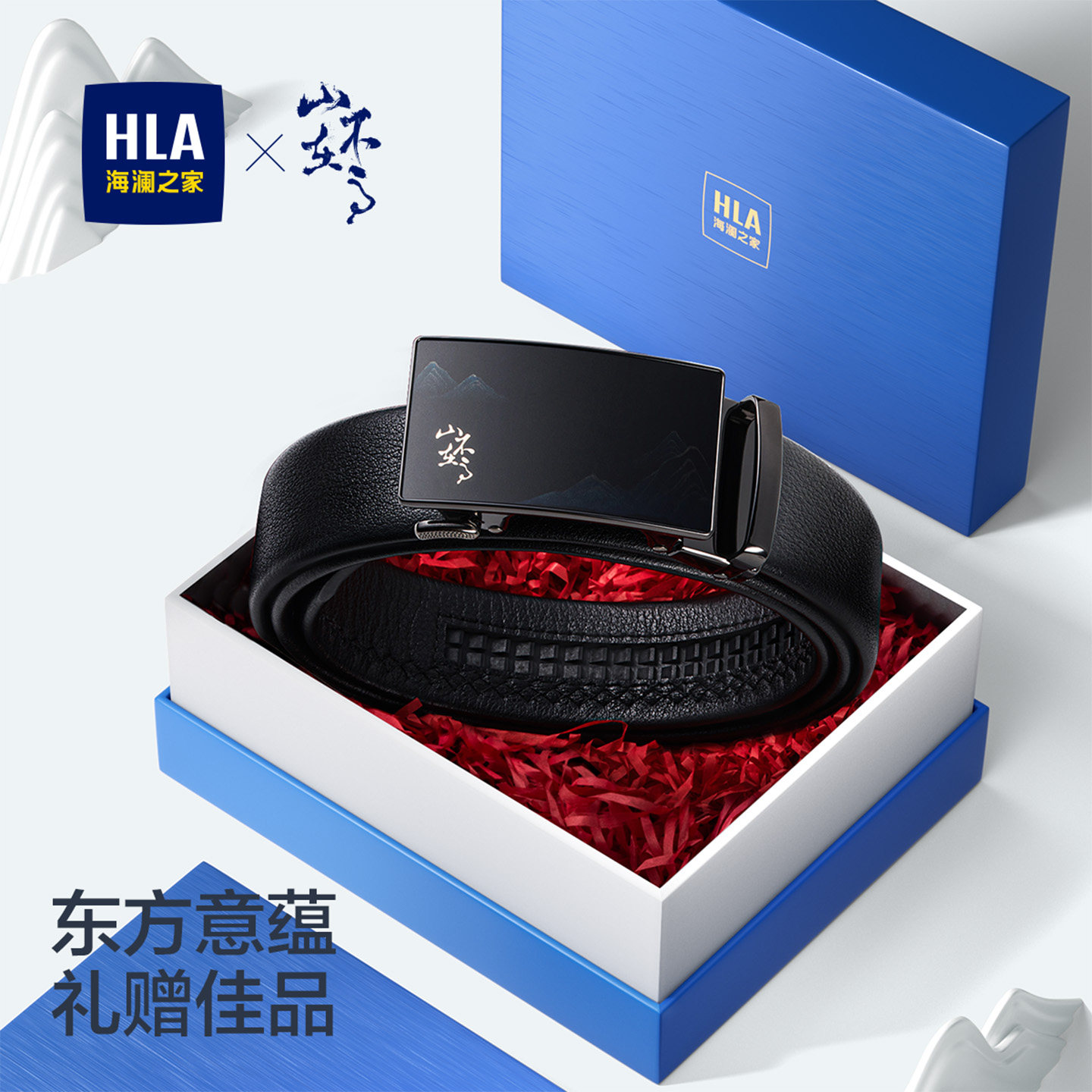 海澜之家头层牛皮皮带男生日礼物实用真皮腰带送爸爸山不在高裤带
