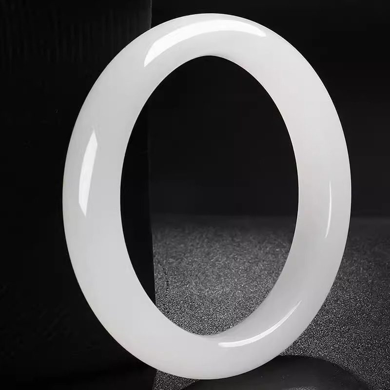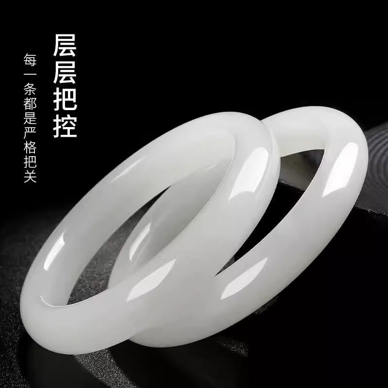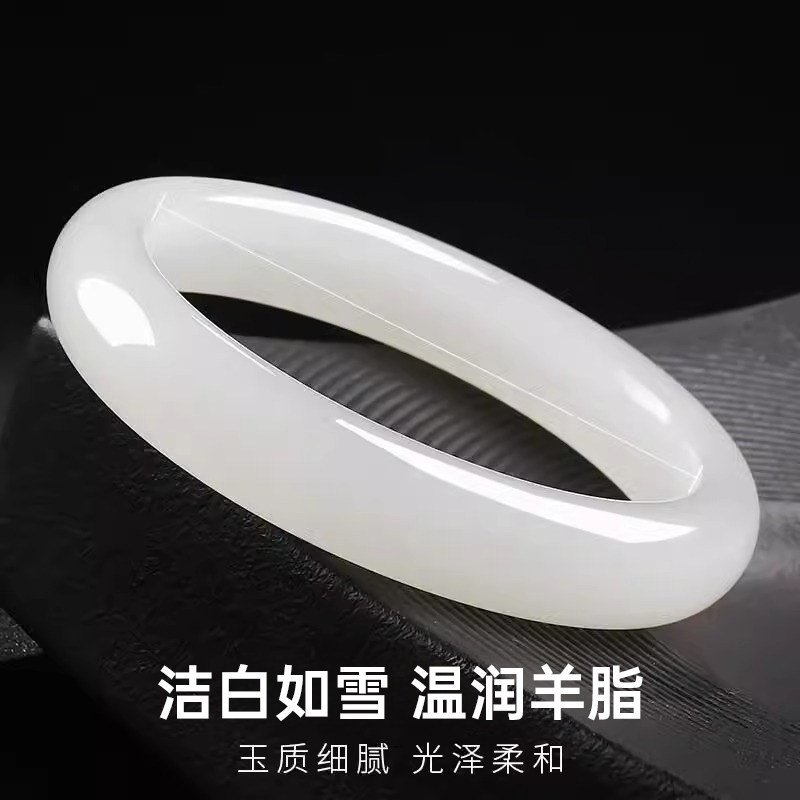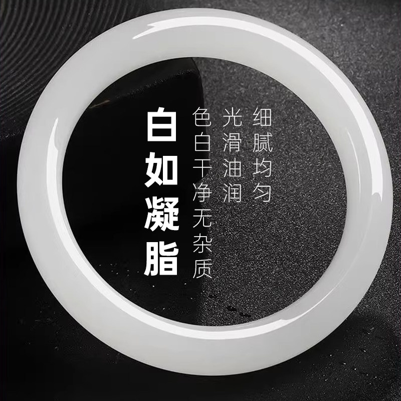 正品羊脂级白玉镯女款新疆和田手镯天然玉石金丝玉宽条送妈妈中心