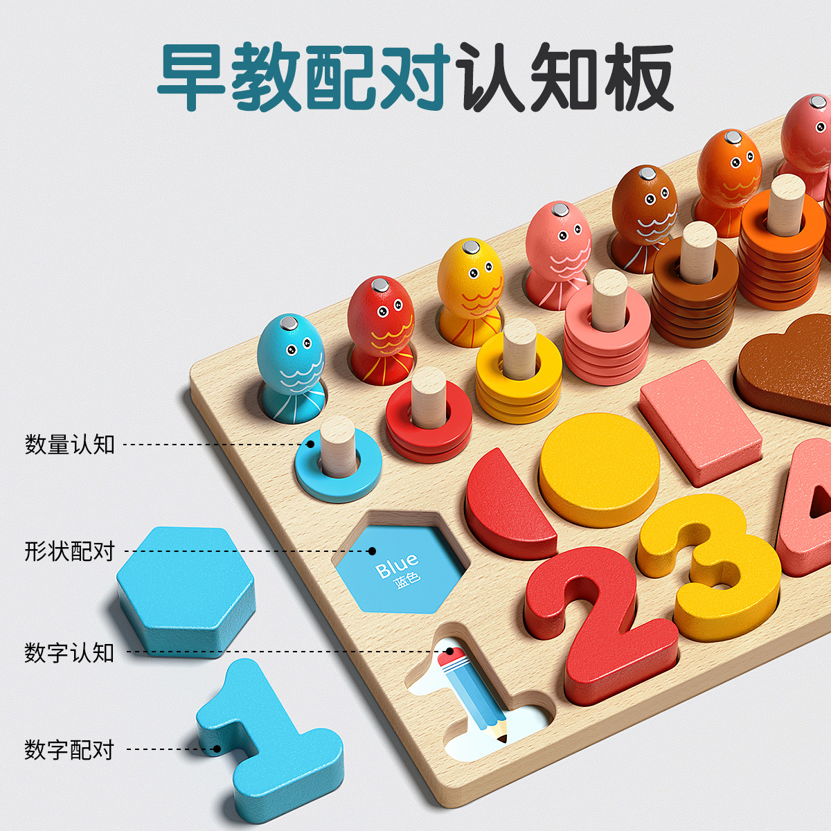 儿童数字积木玩具拼图蒙氏早教益智2到3岁宝宝手抓板认知启蒙教具