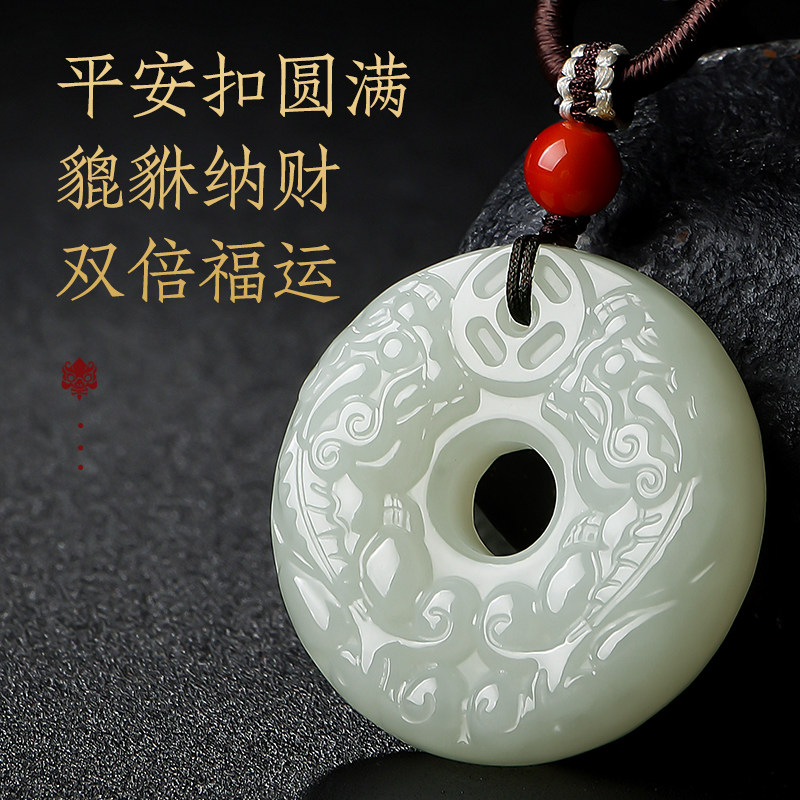 印象眸和田玉貔貅平安扣吊坠男女士双面项链礼物送男朋友玉坠玉佩
