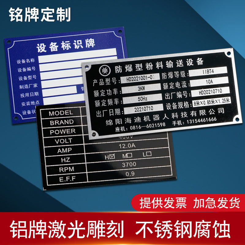 铭牌定制机器设备不锈钢标识牌定做名牌订制铝牌标牌定做丝印腐蚀制作电厂机械阀门配电柜铭牌定做激光雕刻