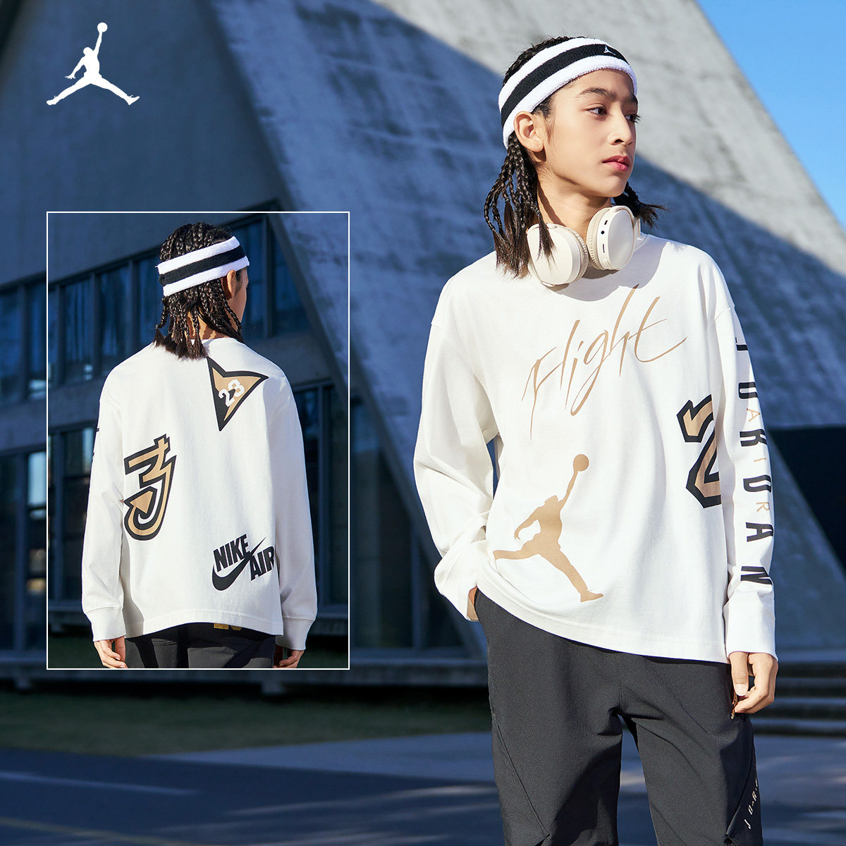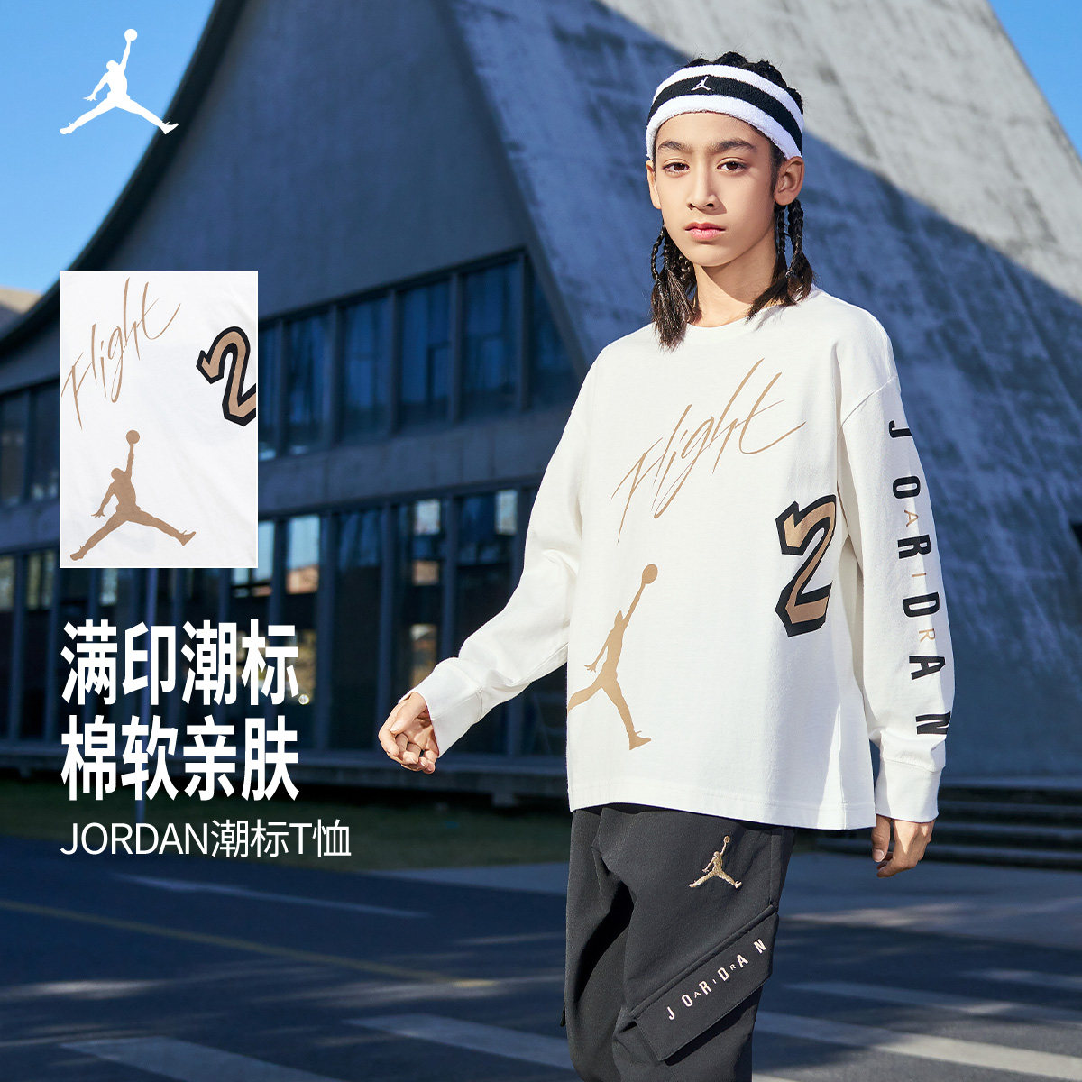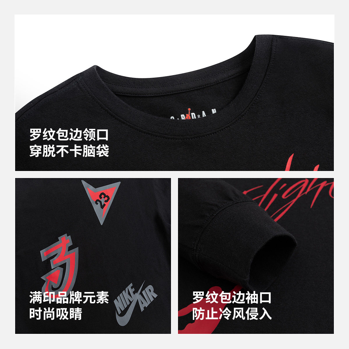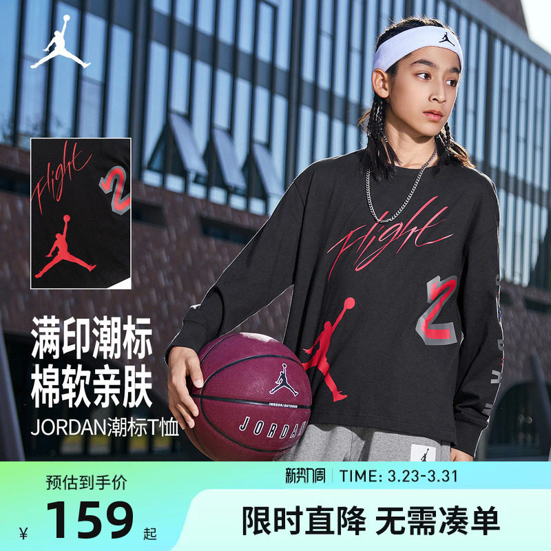 JORDAN儿童装男童长袖T恤春秋款中大童纯棉运动上衣打底JD2332012