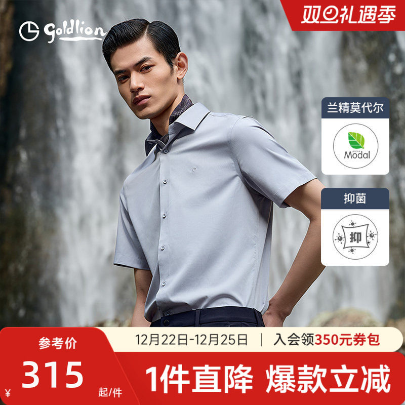 【抗皱易打理】金利来夏季莫代尔弹力白衬衫礼盒商务休闲短袖衬衣