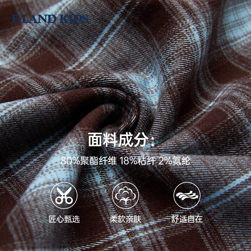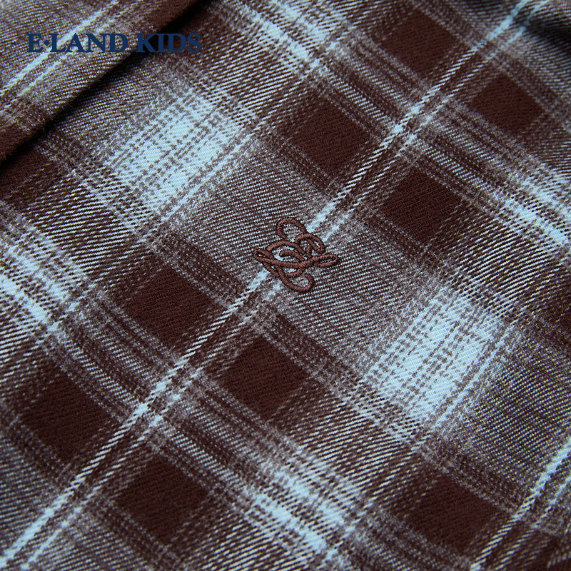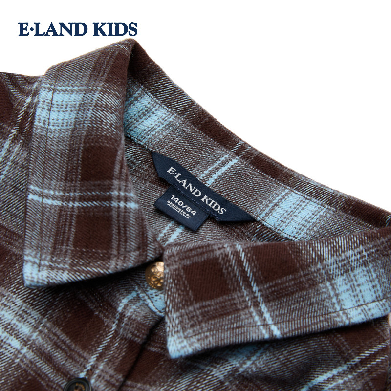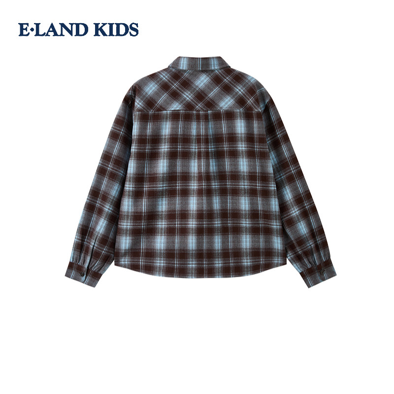 eland kids衣恋童装女童衬衫25冬新品复古学院风刺绣格纹翻领上衣