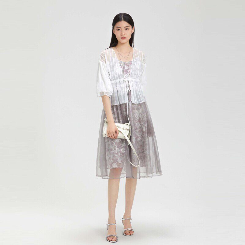 sdeer圣迪奥女装清新绣花网纱吊带连衣裙套装S232Z1407