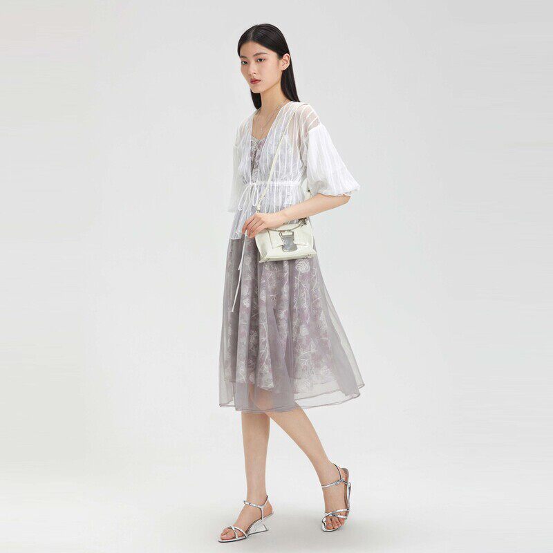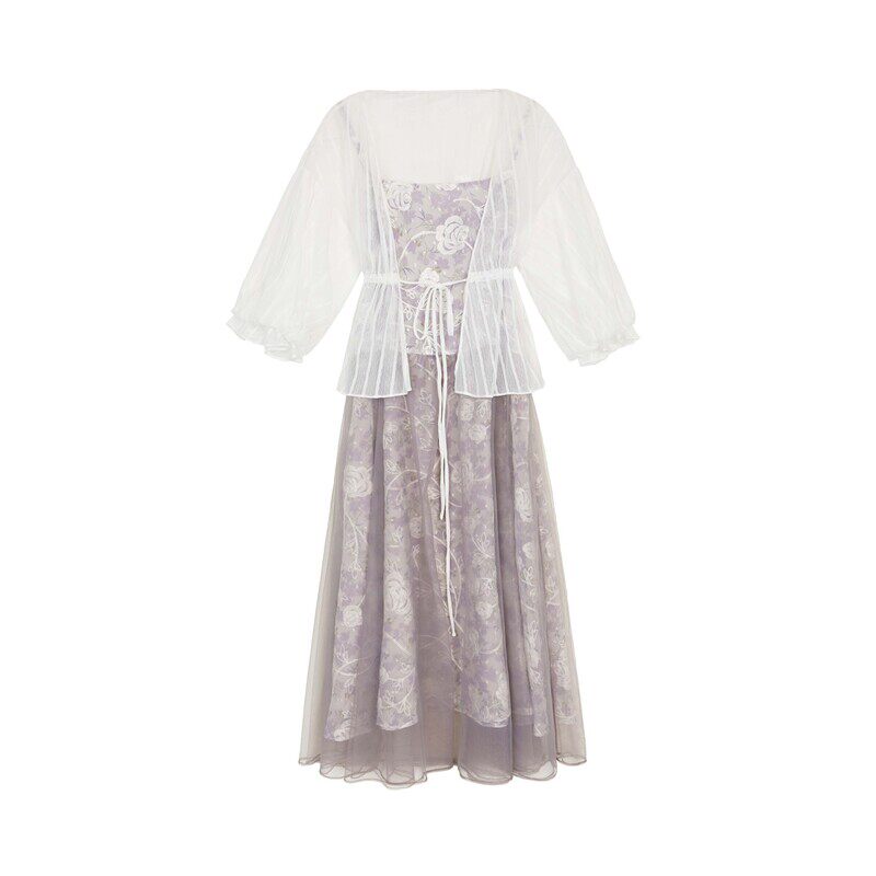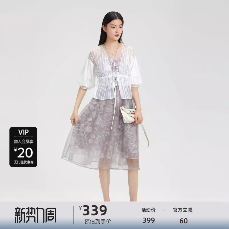 连衣裙套装 清新绣花 网纱拼接