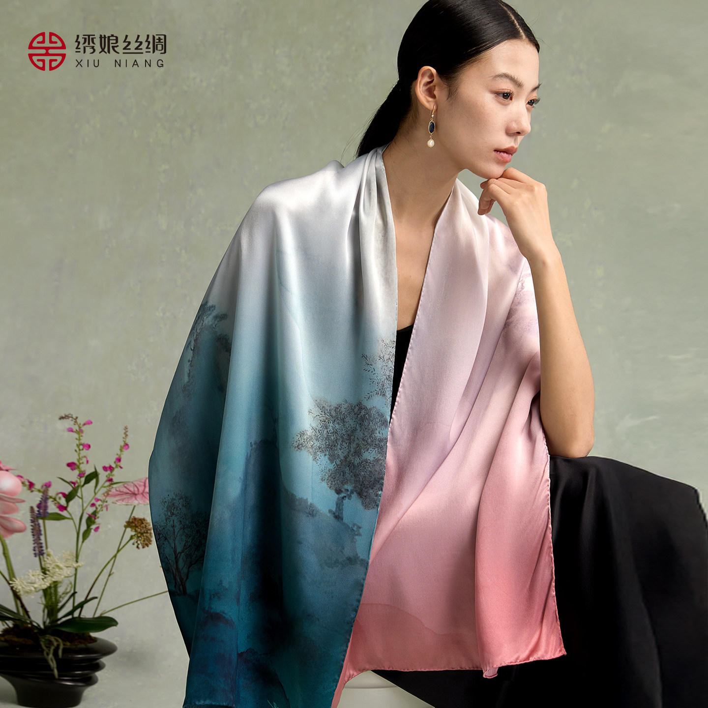 绣娘丝绸100%桑蚕丝真丝丝巾长条系脖高级感2026春夏新款送礼礼盒