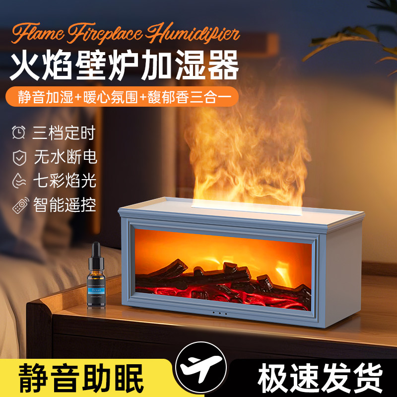 壁炉香薰机火焰家用卧室办公室桌面静音USB加湿器仿真火焰香气喷雾卧室内熏香精油插电氛围灯usb加湿器