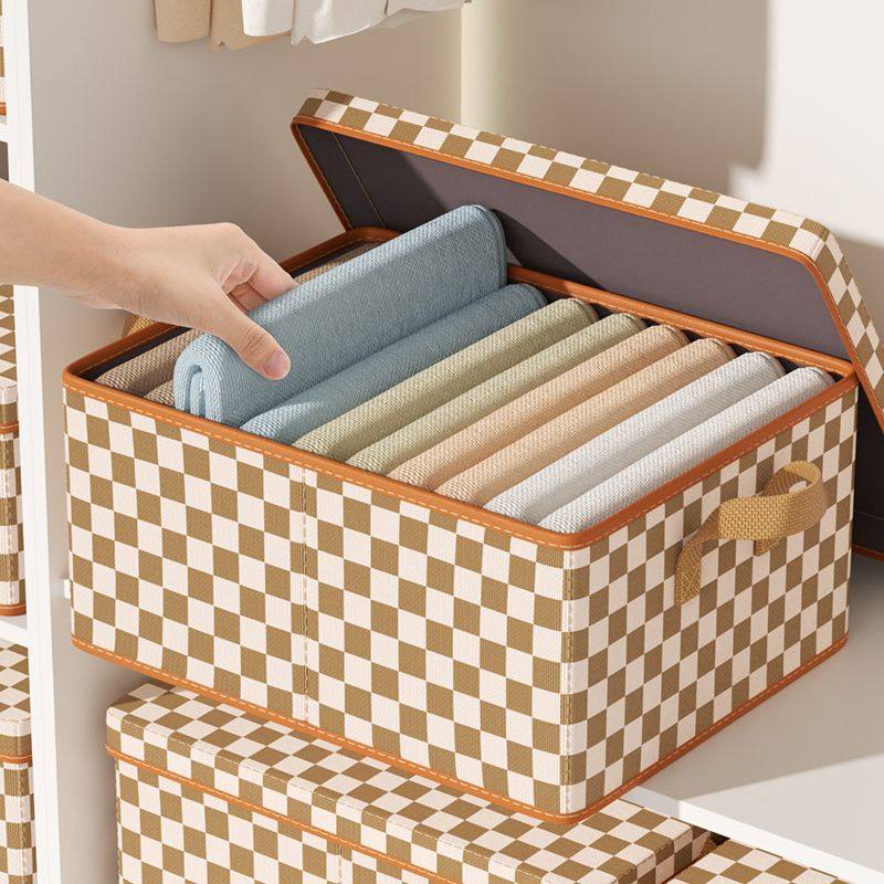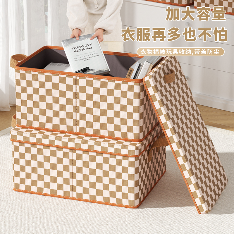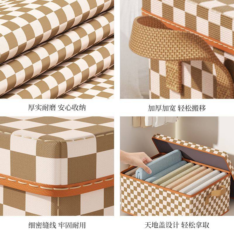 衣服收纳箱千鸟格家用衣柜分层整理收纳神器放衣物布艺折叠收纳筐